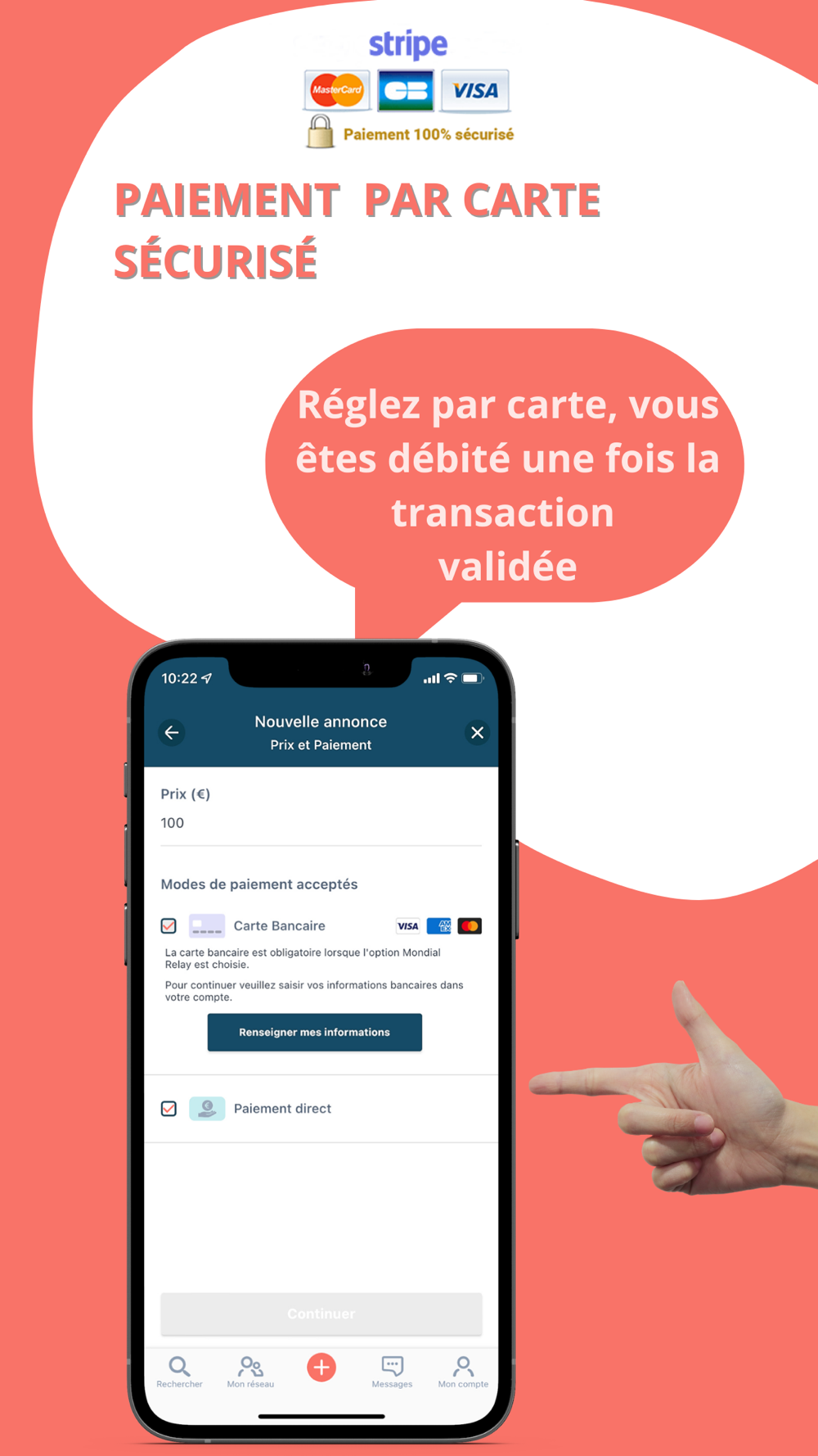 Bien évidemment, les paiements sont sécurisés. Chaque paiement est conservé jusqu’à la validation de la transaction grâce à la Garantie DILUI. L’envoi d’objet est assuré dans toute la France par notre partenaire Mondial Relay.
