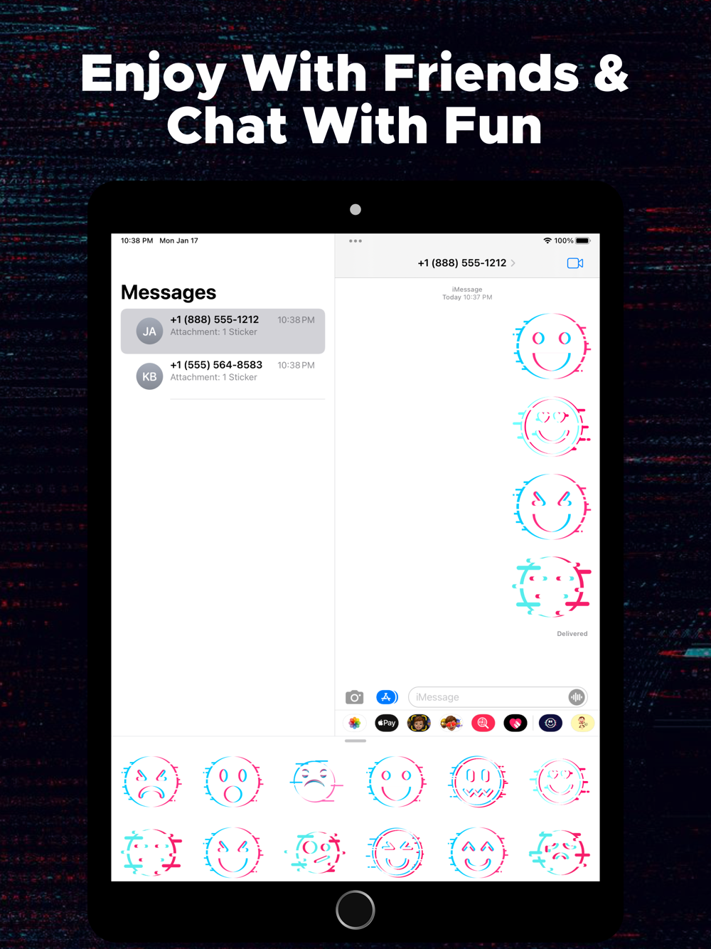 • Click the icon on the lower left corner and then the plus icon to access the App Store for iMessage. Tap Manage tab and find Glitch Stickers to add it.