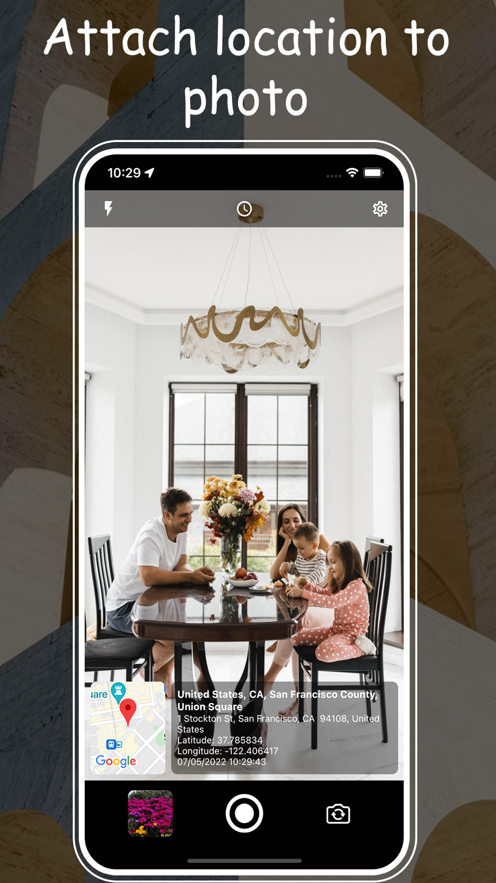 The application attaches location information to the photo when taking it