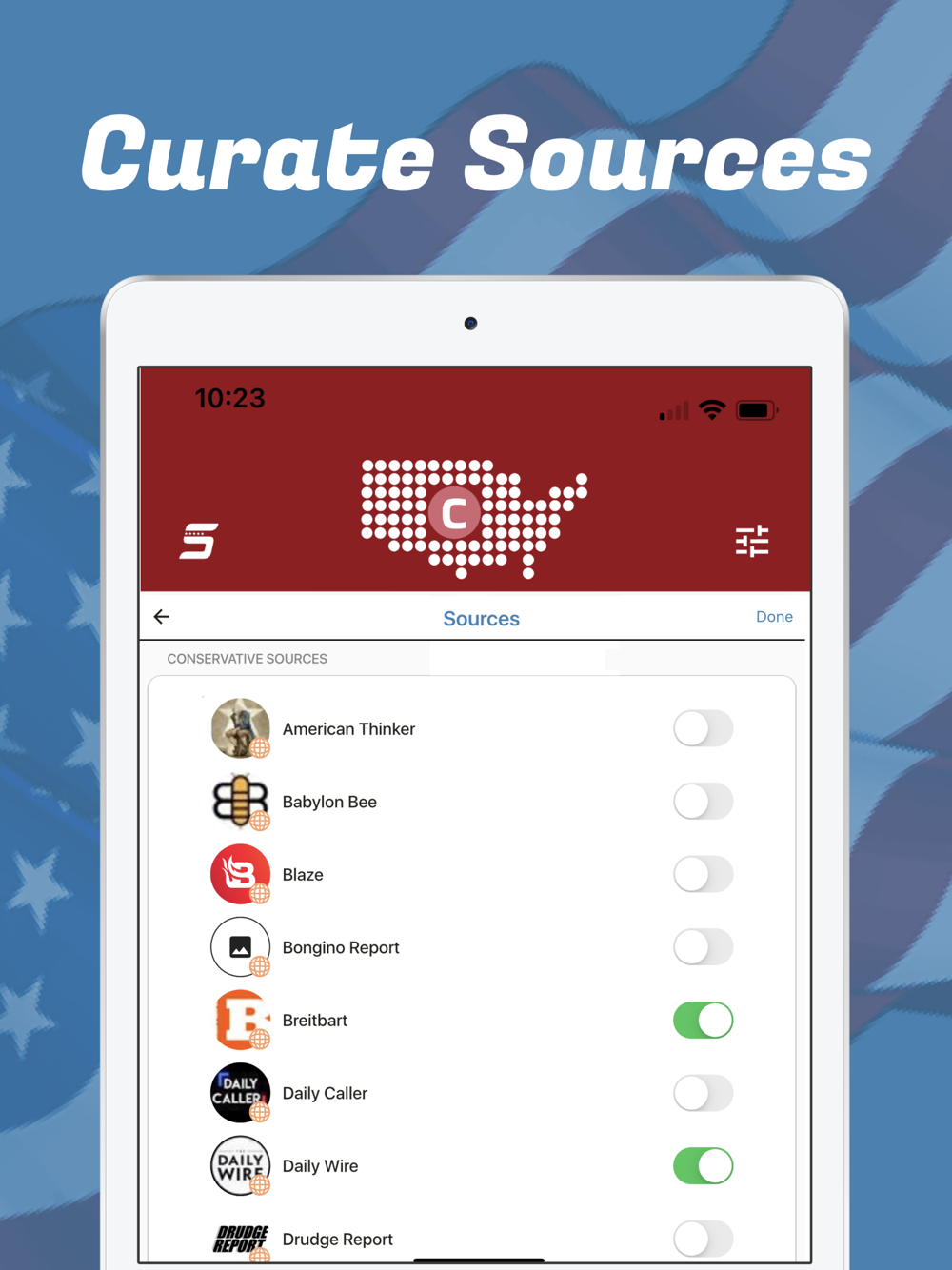 The official Conservative News App is here! Easily follow and read all of your favorite conservative news sources. Up to date and refreshed in real time, you will never miss what’s happening in Conservative America.