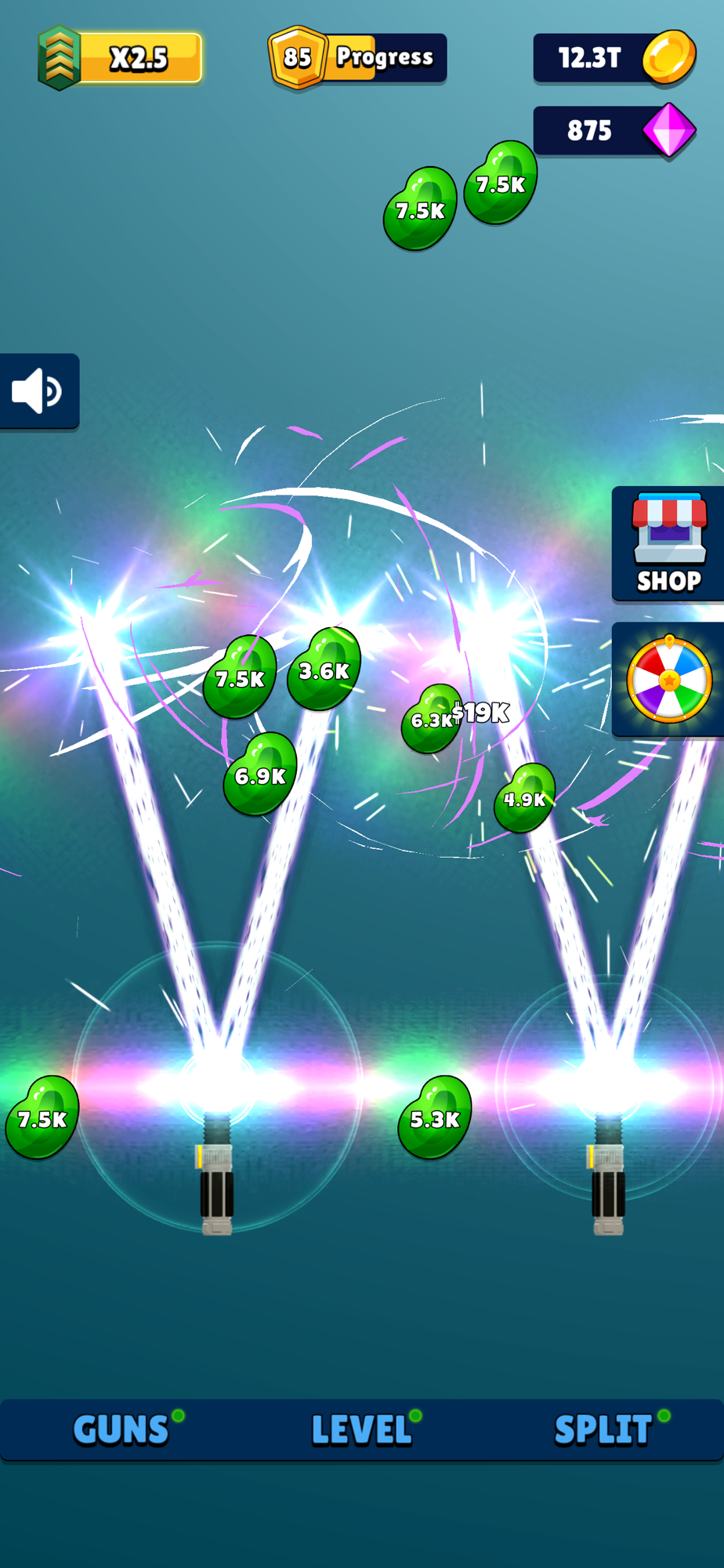 Reset game: Restart the laser game to get permanent bonuses. Start game from scratch, but all your skills remain. So you can progress in the space game faster and rich higher levels!