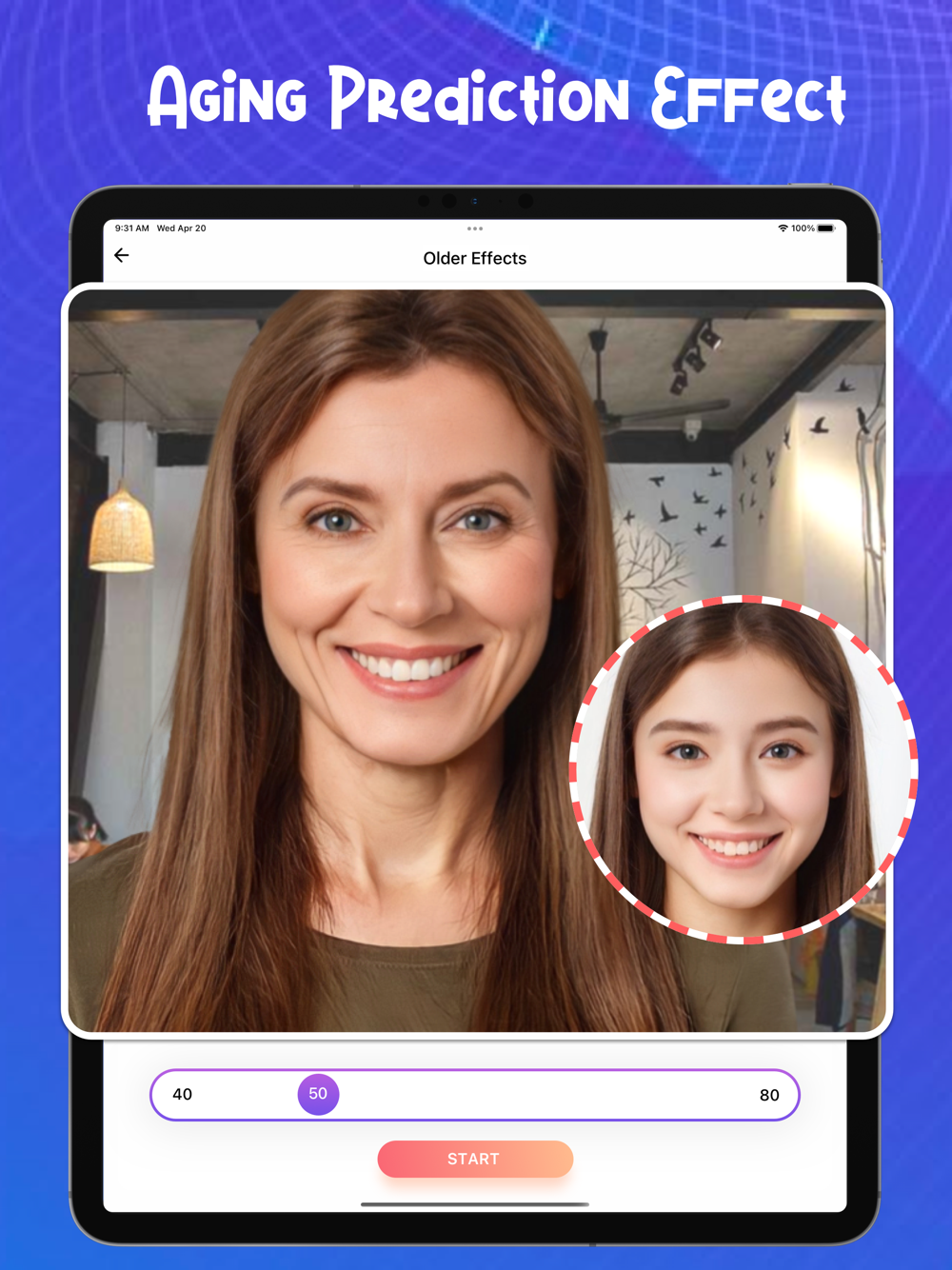 Take a photo, and select how many years you want to add. You can choose to add 30, 50, or even 80 years. With machine learning face prediction, that will be an interesting thing to look forward to in this application!
