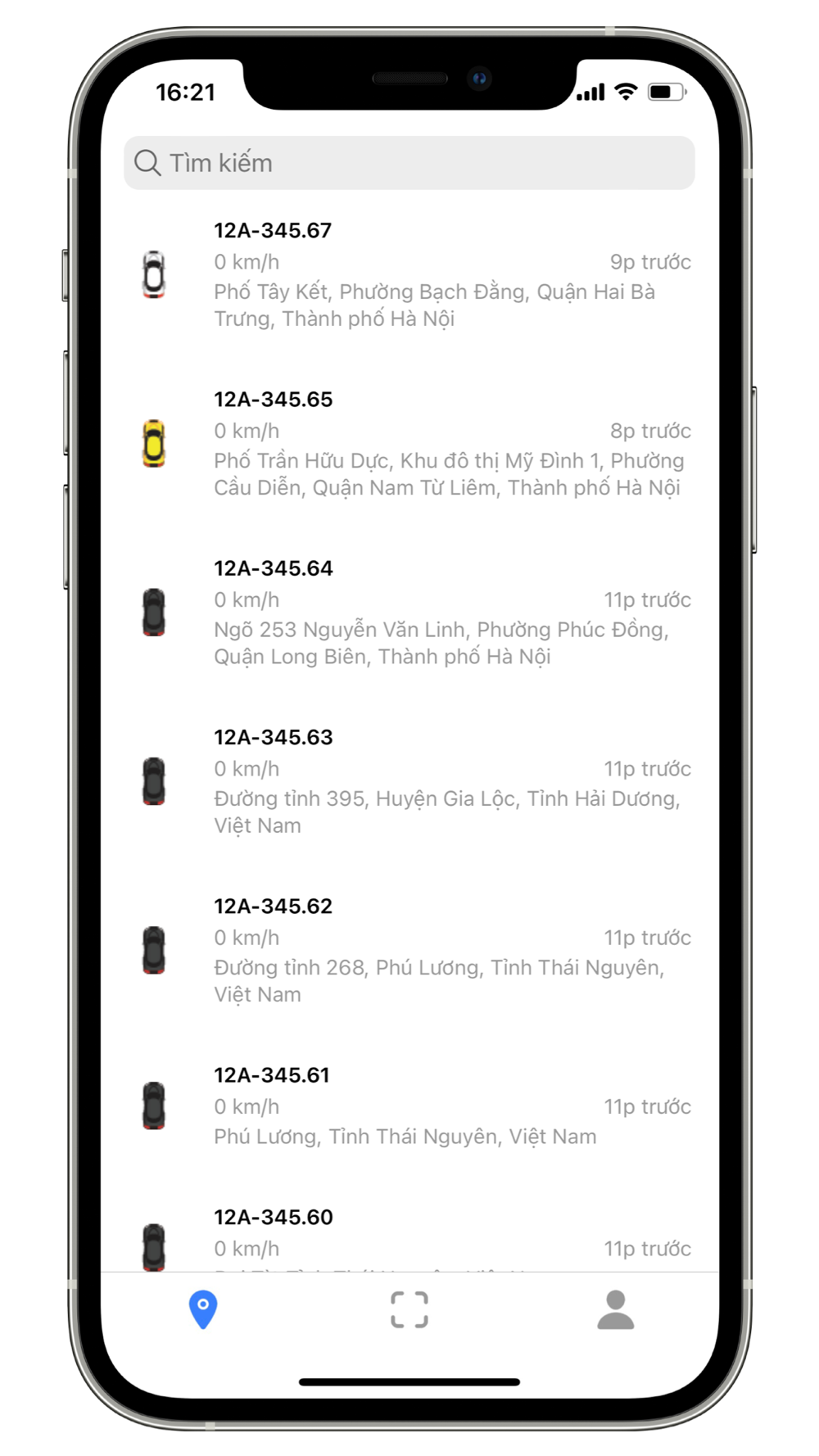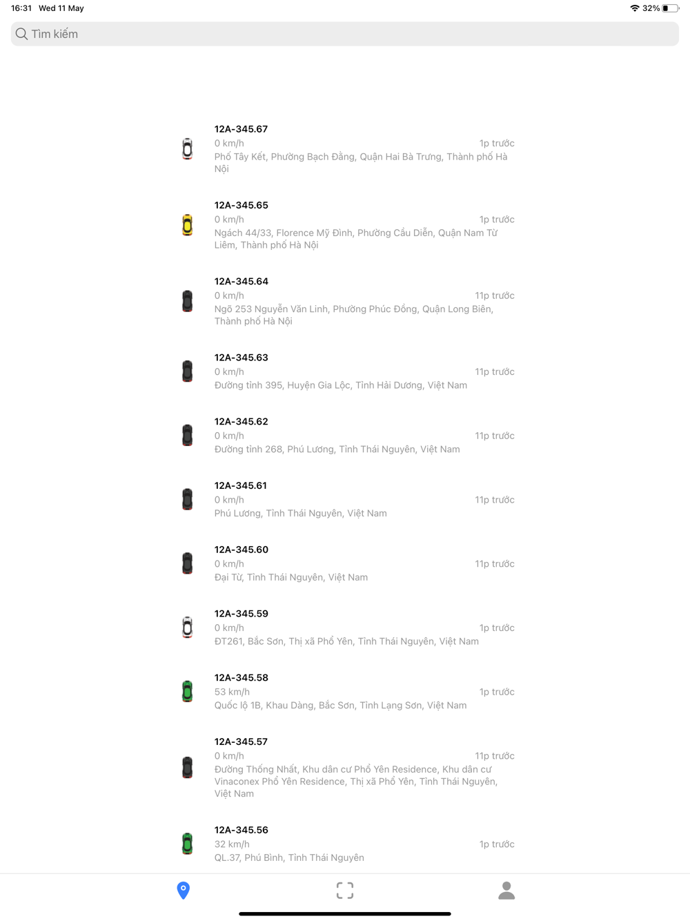 - Xem danh sách các xe, kèm theo trạng thái tổng quan (tốc độ, địa chỉ, thời gian cập nhật,...)