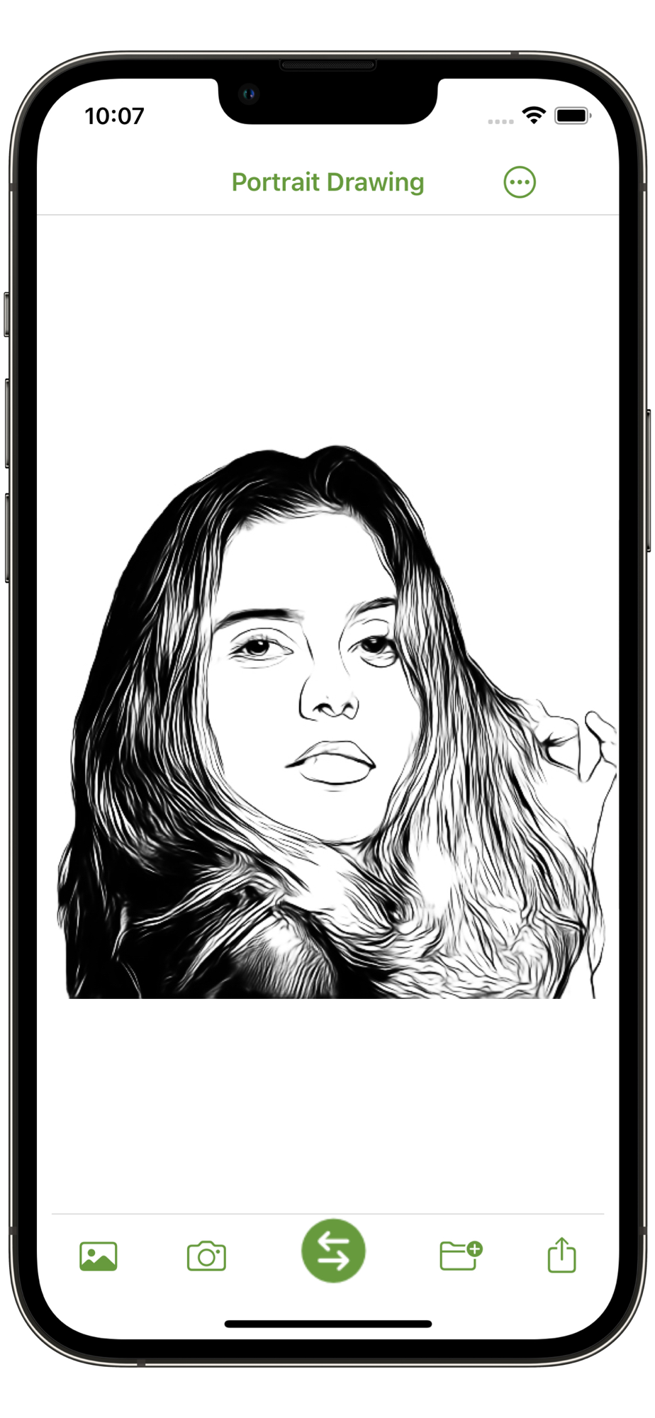 Simply take a photo or select a photo from the photo library on your iPhone, the the app will detect a person's face, isolate it from background and generate an artistic portrait drawing image.