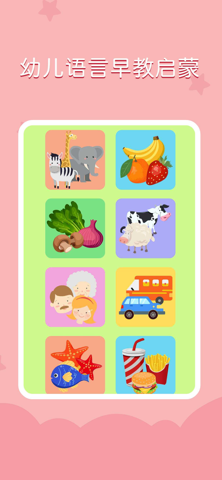 1. 精选认知卡片,包括动物认知、水果认知、蔬菜认知、颜色认知、形状认知、数字识别、日常用品等。