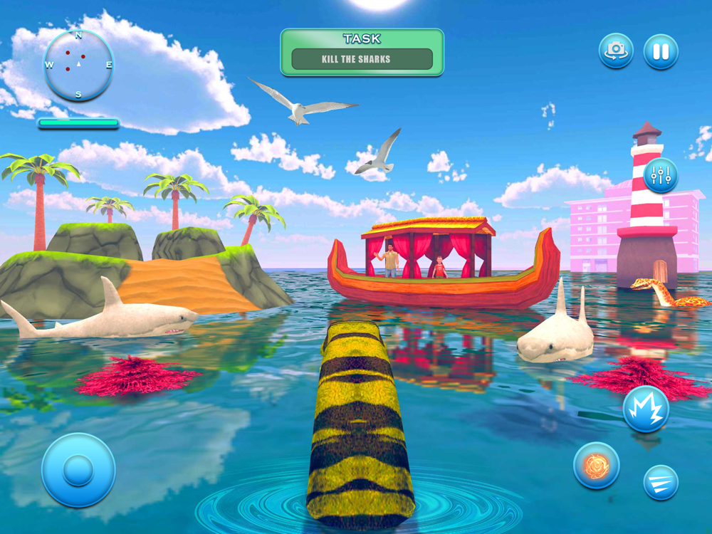 Fulfill your desire to get food by attacking boats, ships, and other marine animals. Take control of this sea mammal and beast-like monster and enjoy your meal while playing this most thrilling game. Exploration of mysterious world underwater full of different sea animals and save your family from predators and other monsters. Choose your favorite mood to play with if you want underwater or on the surface to enjoy this adventure.