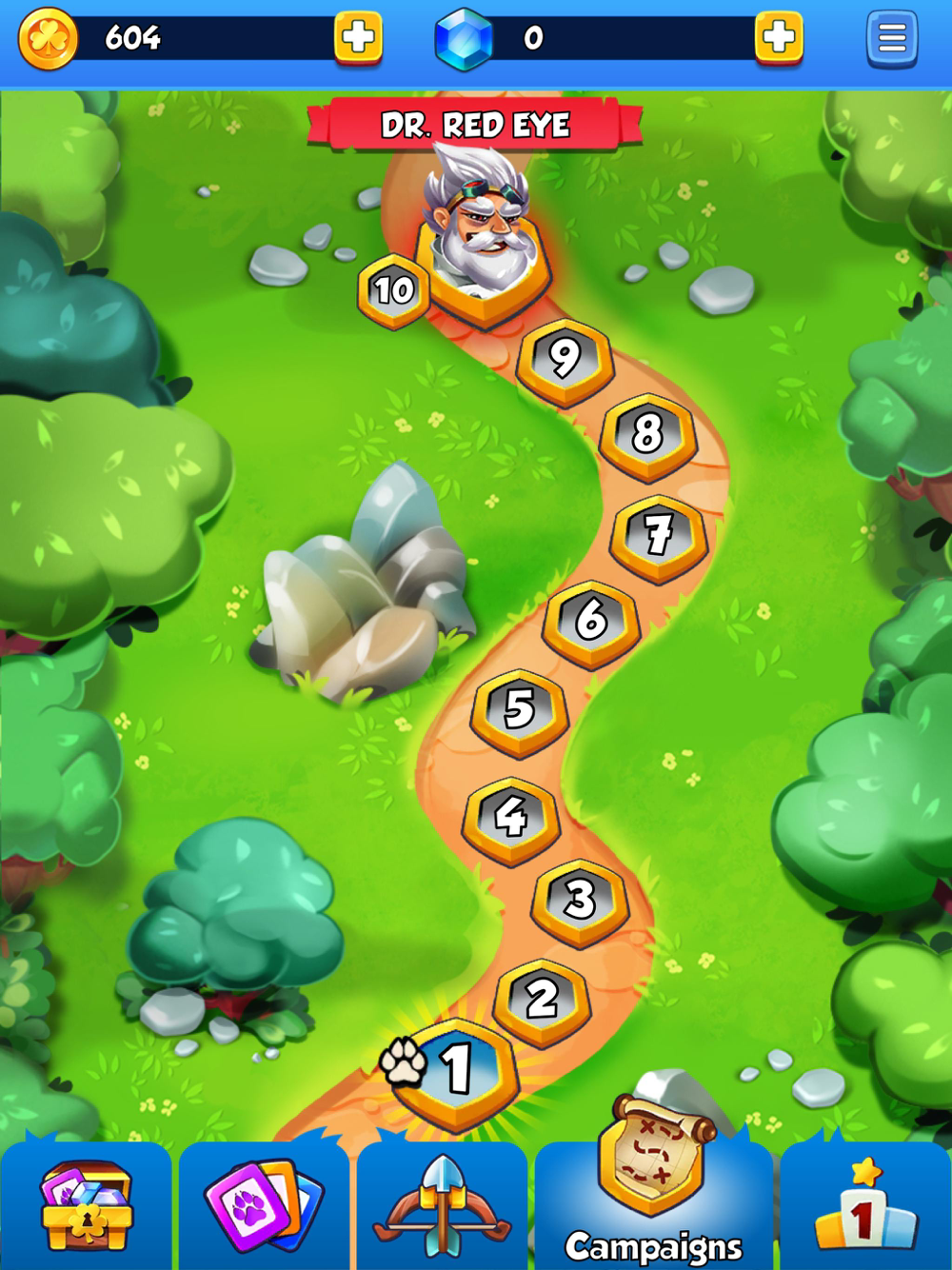 Your activity is constantly rewarded and you will earn new and different cards with cute but furious animals that can be upgraded. It is completely up to you how to invest in your cards and build up your strategy. You have 5 slots in your squad and placing there the right cards will grant you many great achievements on the battlefield.