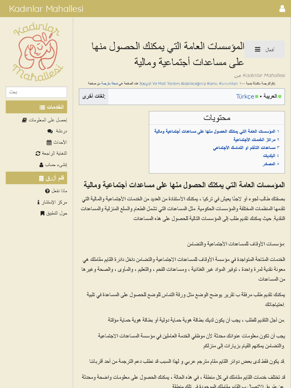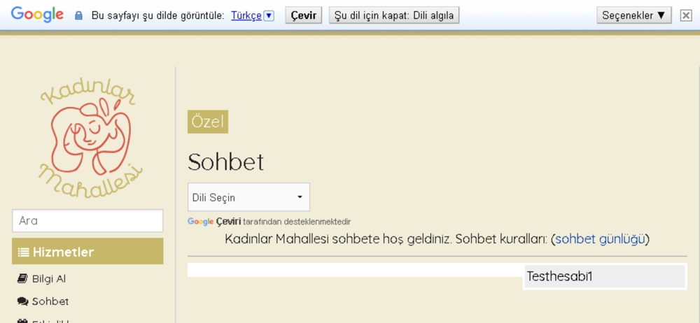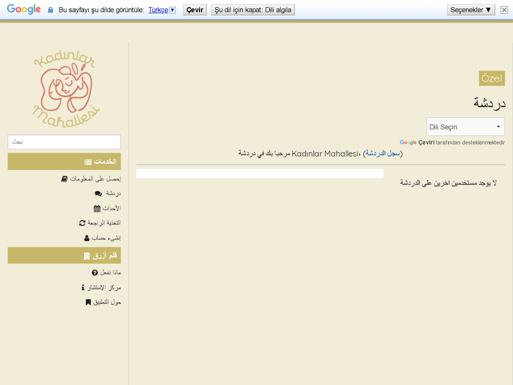 Kadınların Mahallesinin sohbet odası her dilde tercüme altyapısına sahip, farklı dillerden gelen kadınlar bu sayede rahatlıkla sohbet edebiliyor.