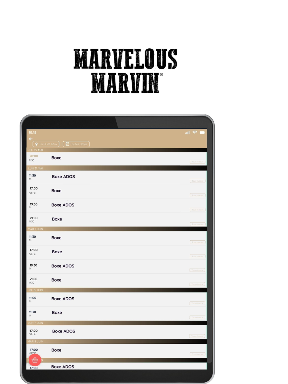 Téléchargez l'application Marvelous Marvin Boxing aujourd'hui pour planifier et réserver vos cours! À partir de cette application mobile, vous pouvez consulter les horaires des cours, vous inscrire et payer directement dans l'appli, voir les promotions en cours, ainsi que contacter votre coach. Optimisez votre temps et maximisez la commodité de vous inscrire aux cours à partir de votre téléphone!