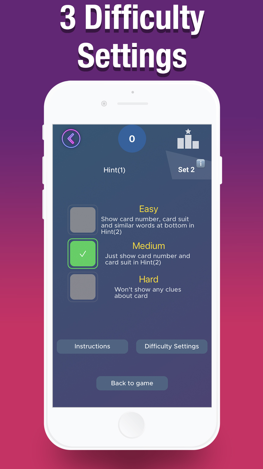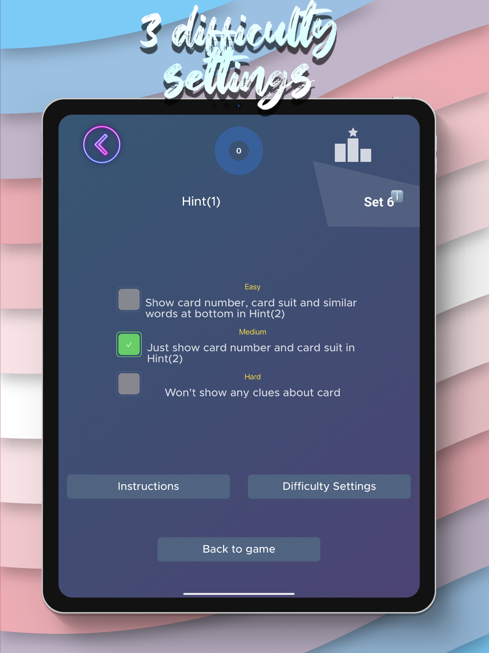 3 Second Card Game offers an auto-renewing subscription option: $2.99 per week ( might be up/down in your currency). Once you’ve confirmed your order, the payment will be charged to your account, with the right price for your country. The subscription will automatically renew at its end date. You can stop the automatic renewal any time. To avoid the renewal, cancel it at least 24h before the end date of your subscription. No refund is available for unused time.