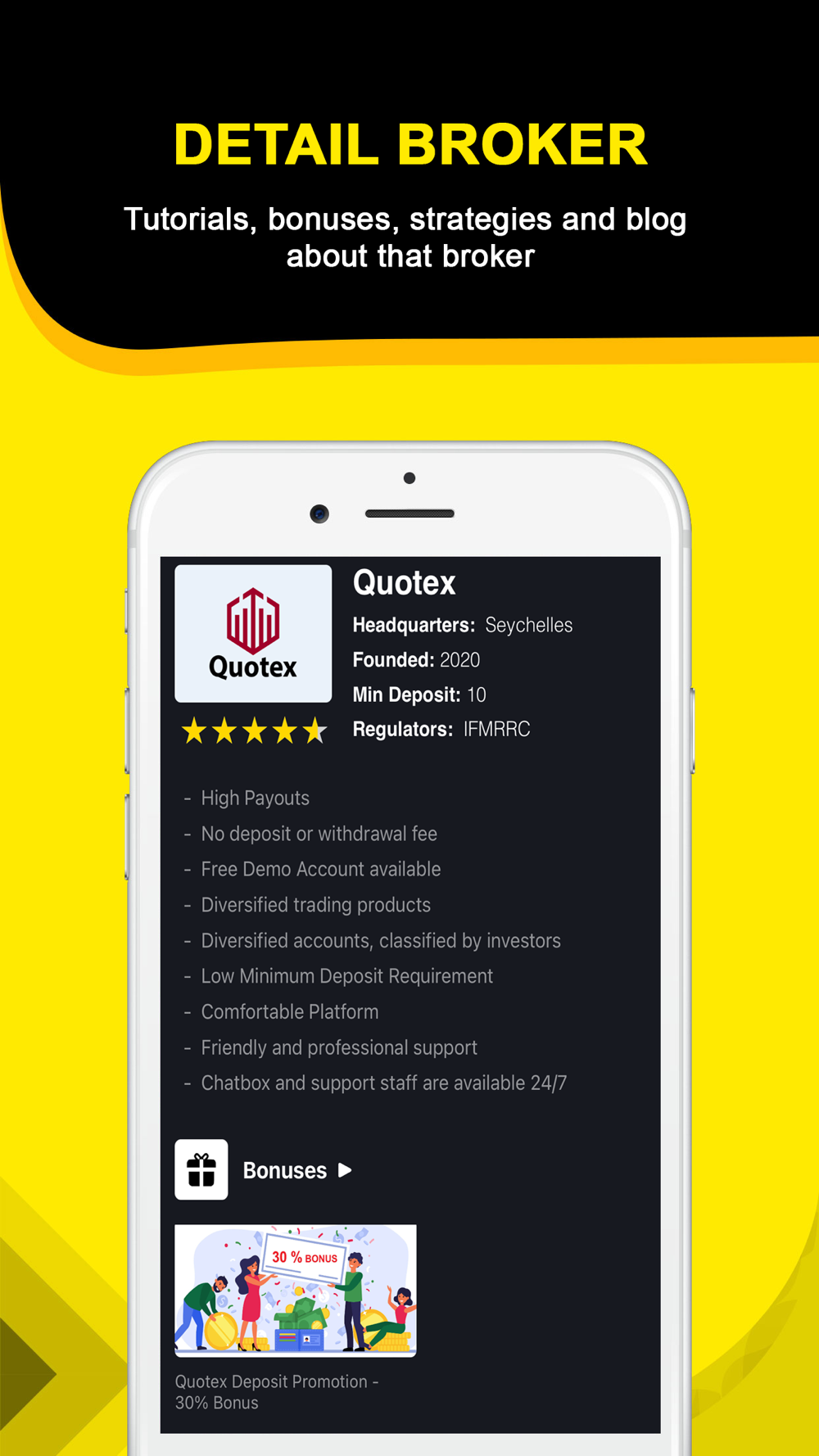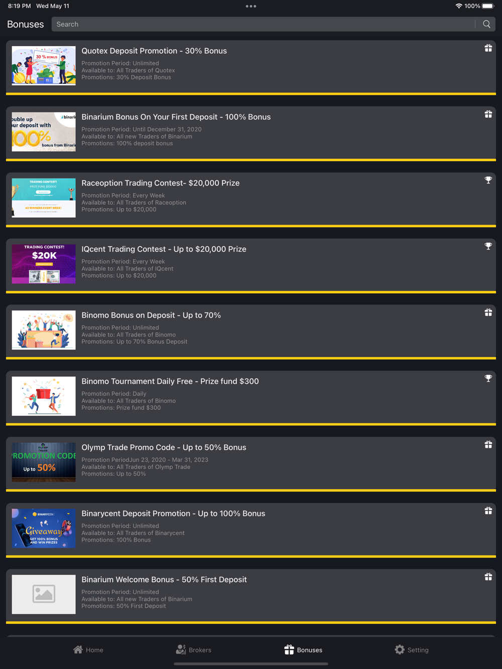 We will always provide you with hot and new information about best Broker bonuses on the market offered by the top binary options brokers. we will immediately take it under consideration and give you brief, but key and important information about it.