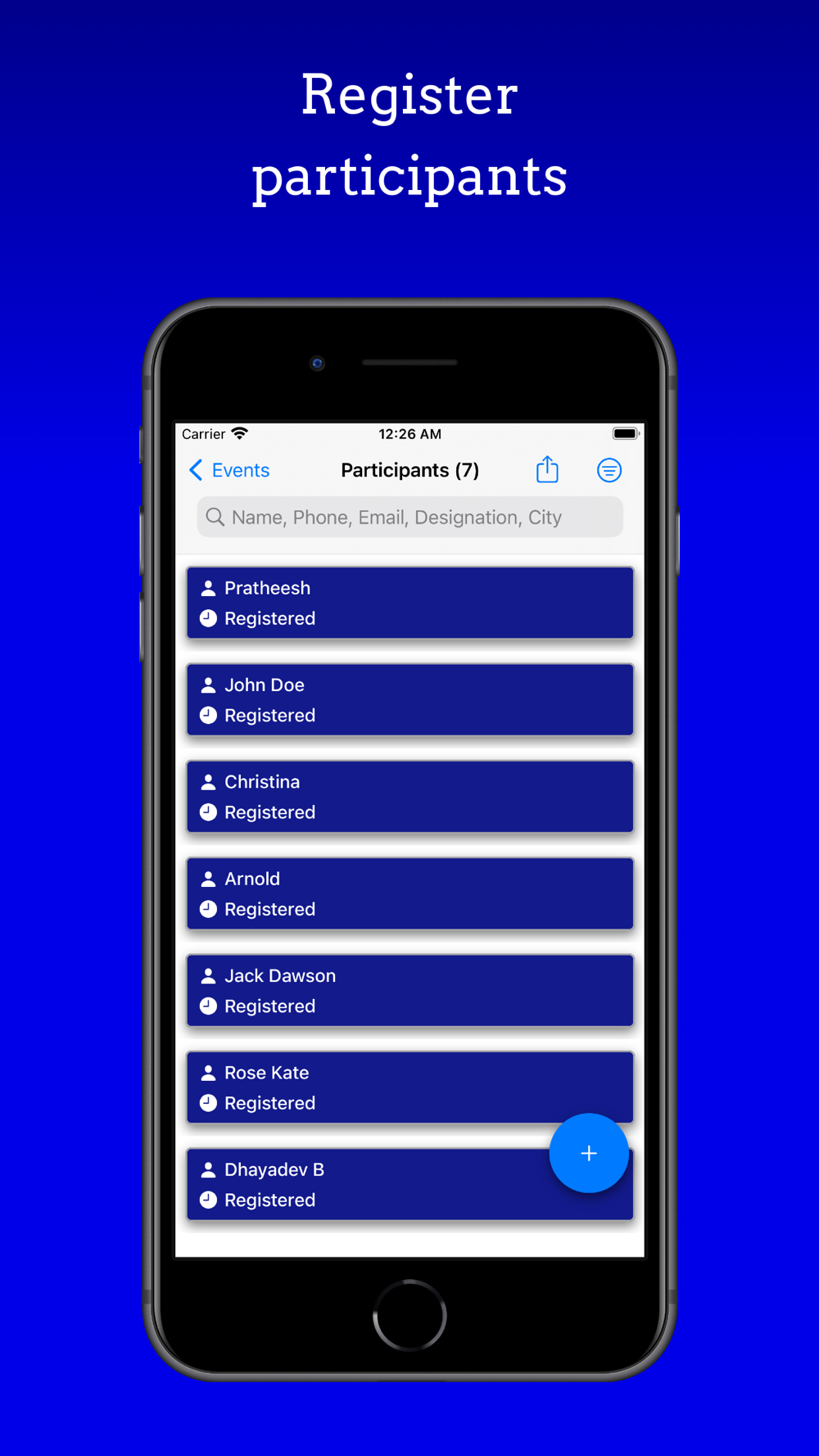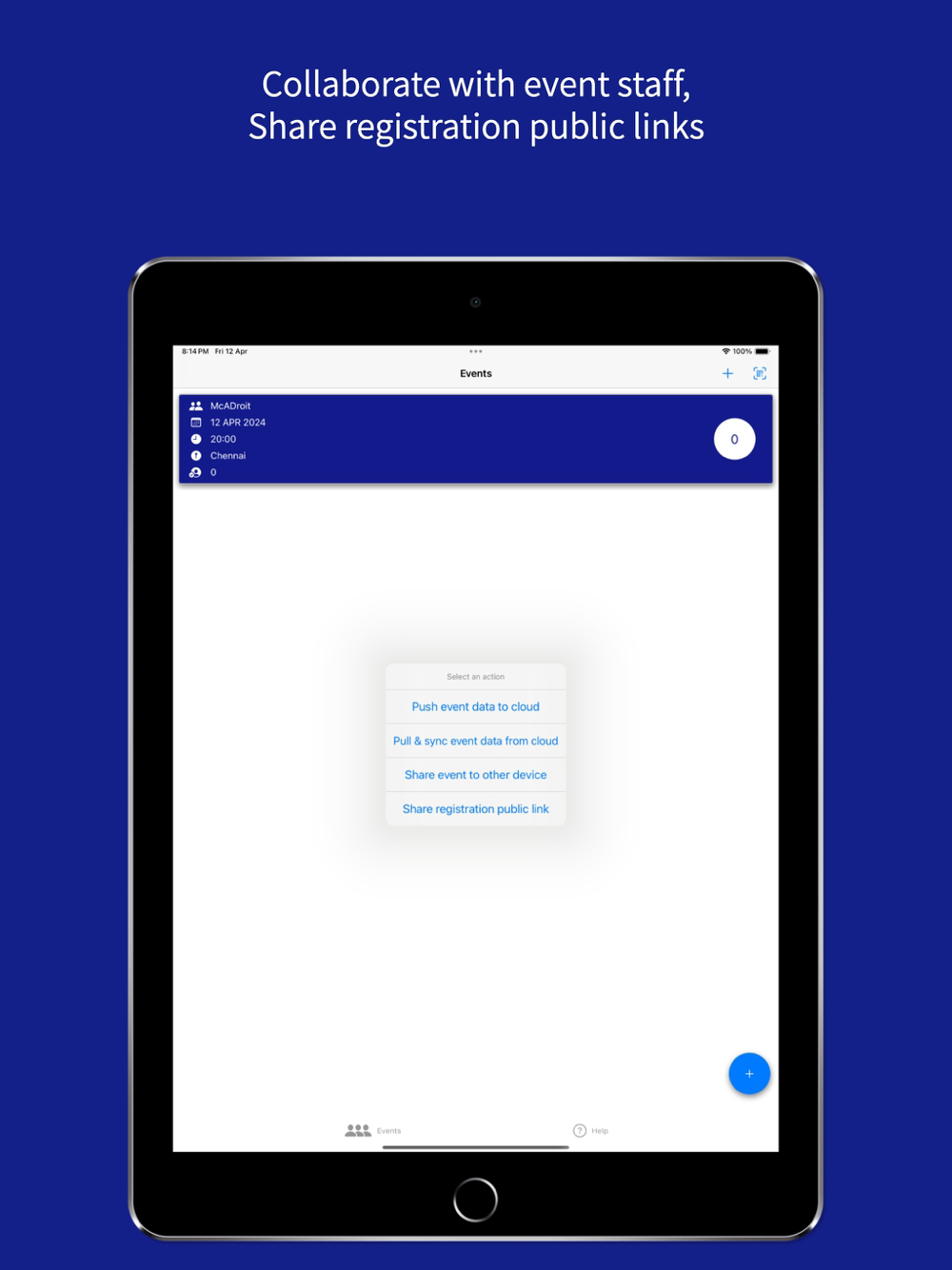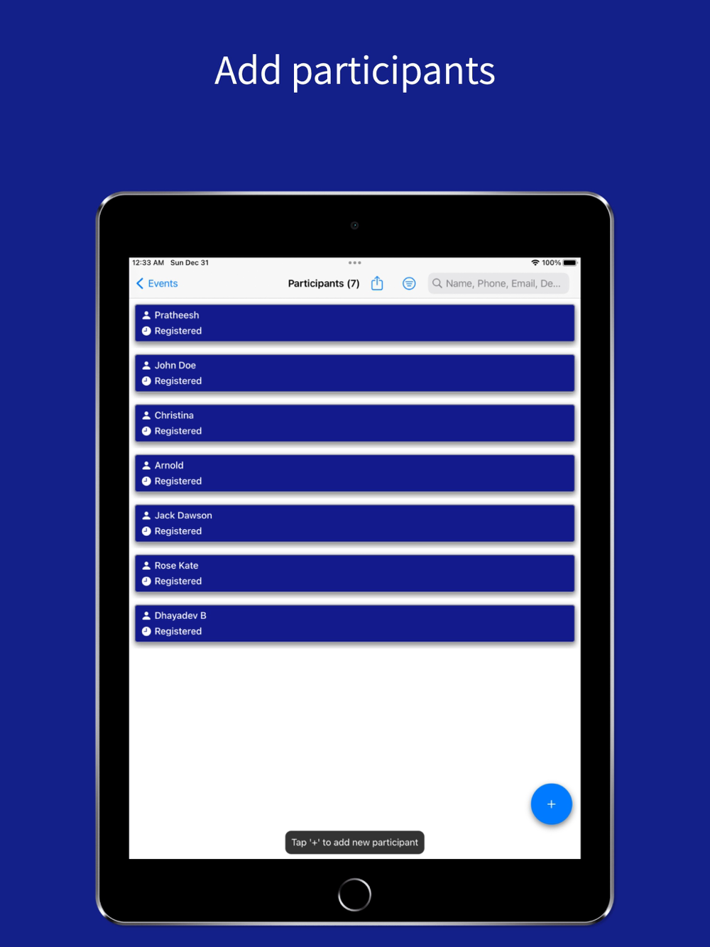 Share a public registration link so participants can register themselves and receive a QR code for entry. You can easily pull and sync the data in the app.