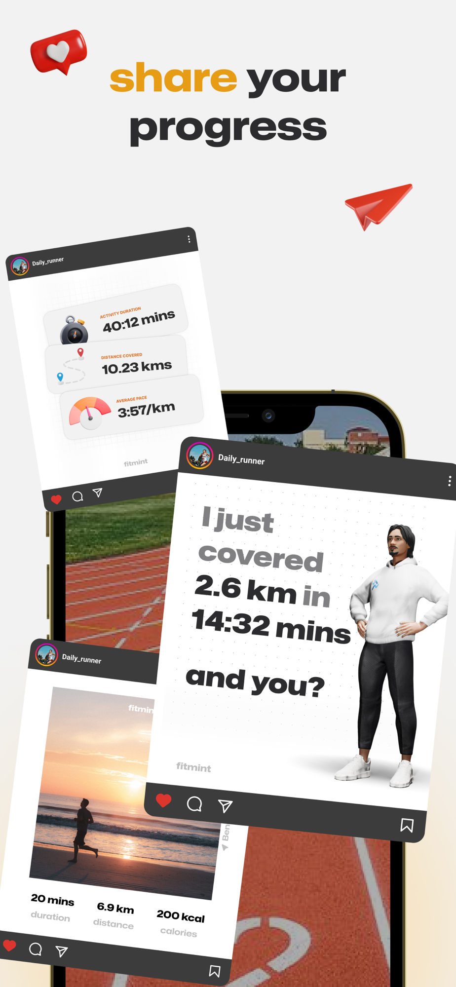 We believe that running is fun when you are on this journey with your friends. Seeing your friend go up in the weekly consistency or distance leaderboard will motivate you to step out and complete that run. You can also cheer your friends or send custom messages to appreciate your friends runs.
