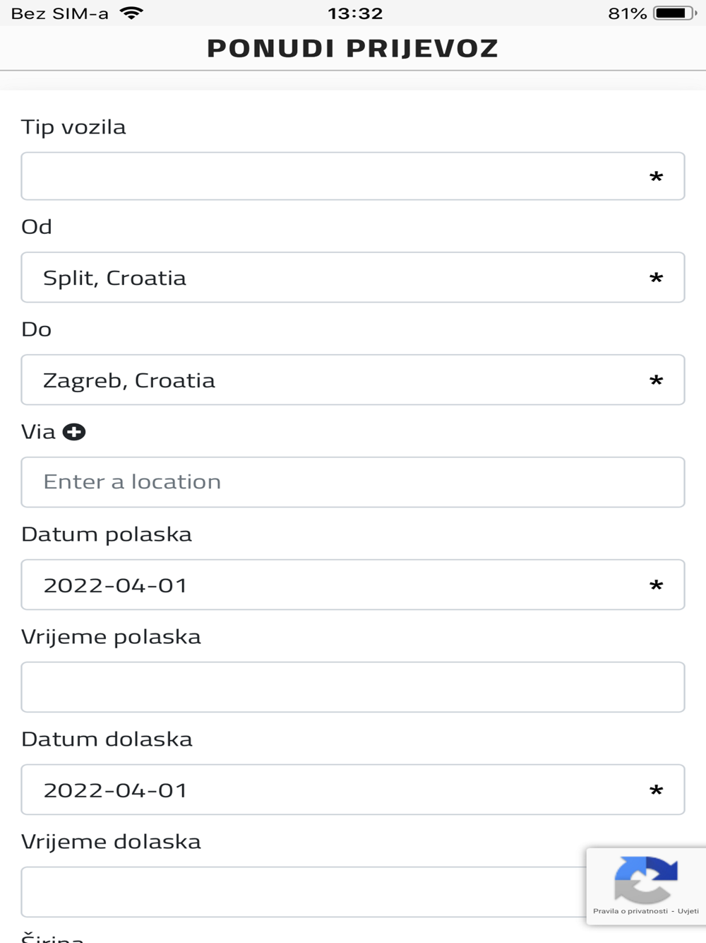 Izaberi profesionalnog ili neprofesionalnog prijevoznika za transport svoje robe.