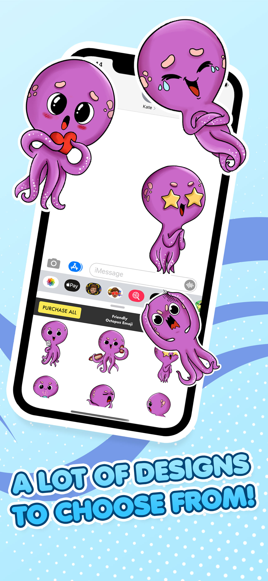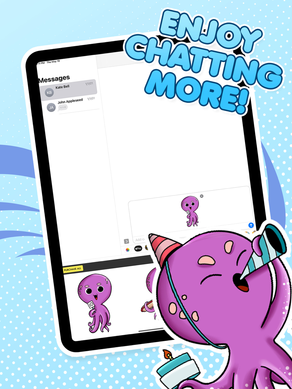 Friendly octopus emoji stickers for your daily chat and communication on your iPhone, iPad and others.