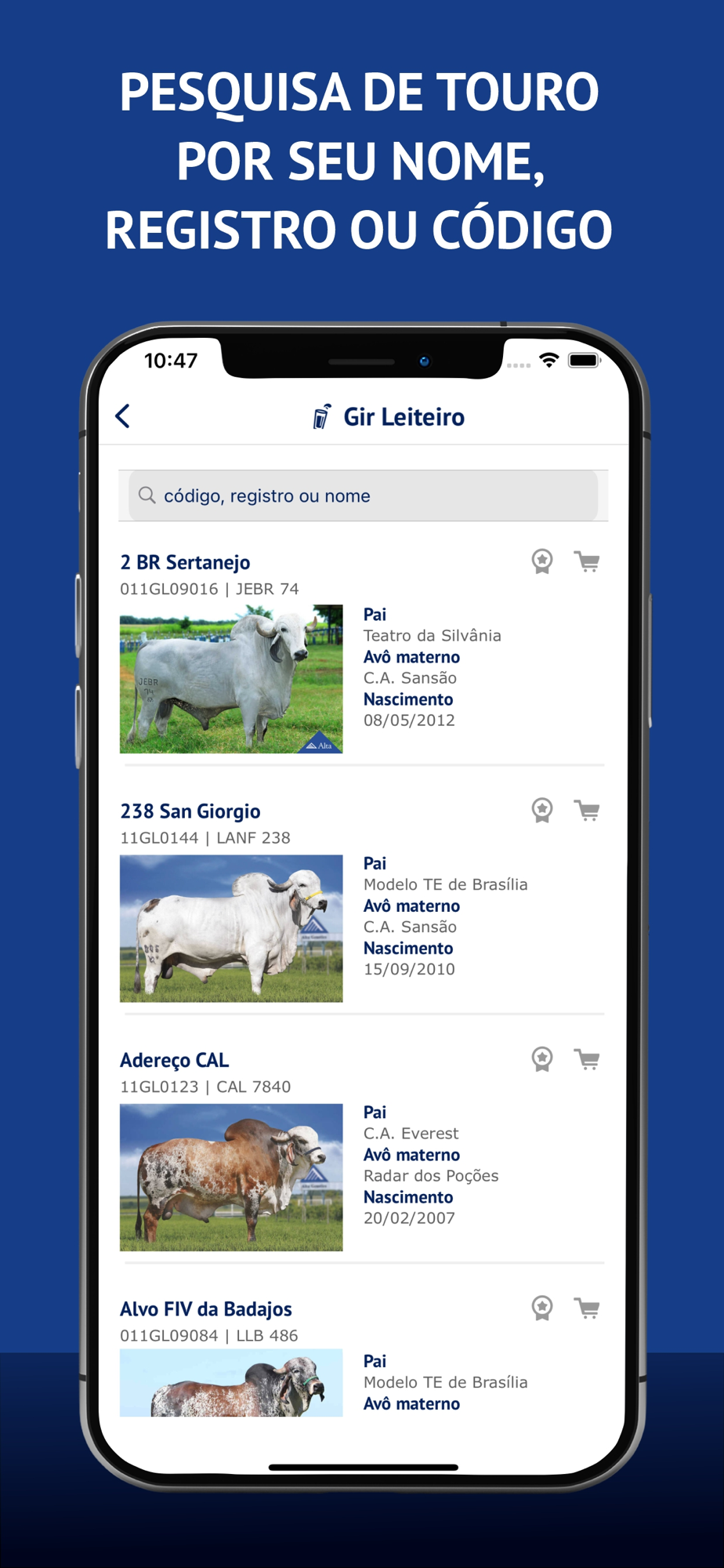No aplicativo você poderá gerar catálogo em PDF com seus touros favoritos, selecionar filtros de acordo com o critério de seleção do seu rebanho, pedir orçamentos para um representante mais próximo de sua cidade e utilizar calculadoras para facilitar seu dia a dia na fazenda.