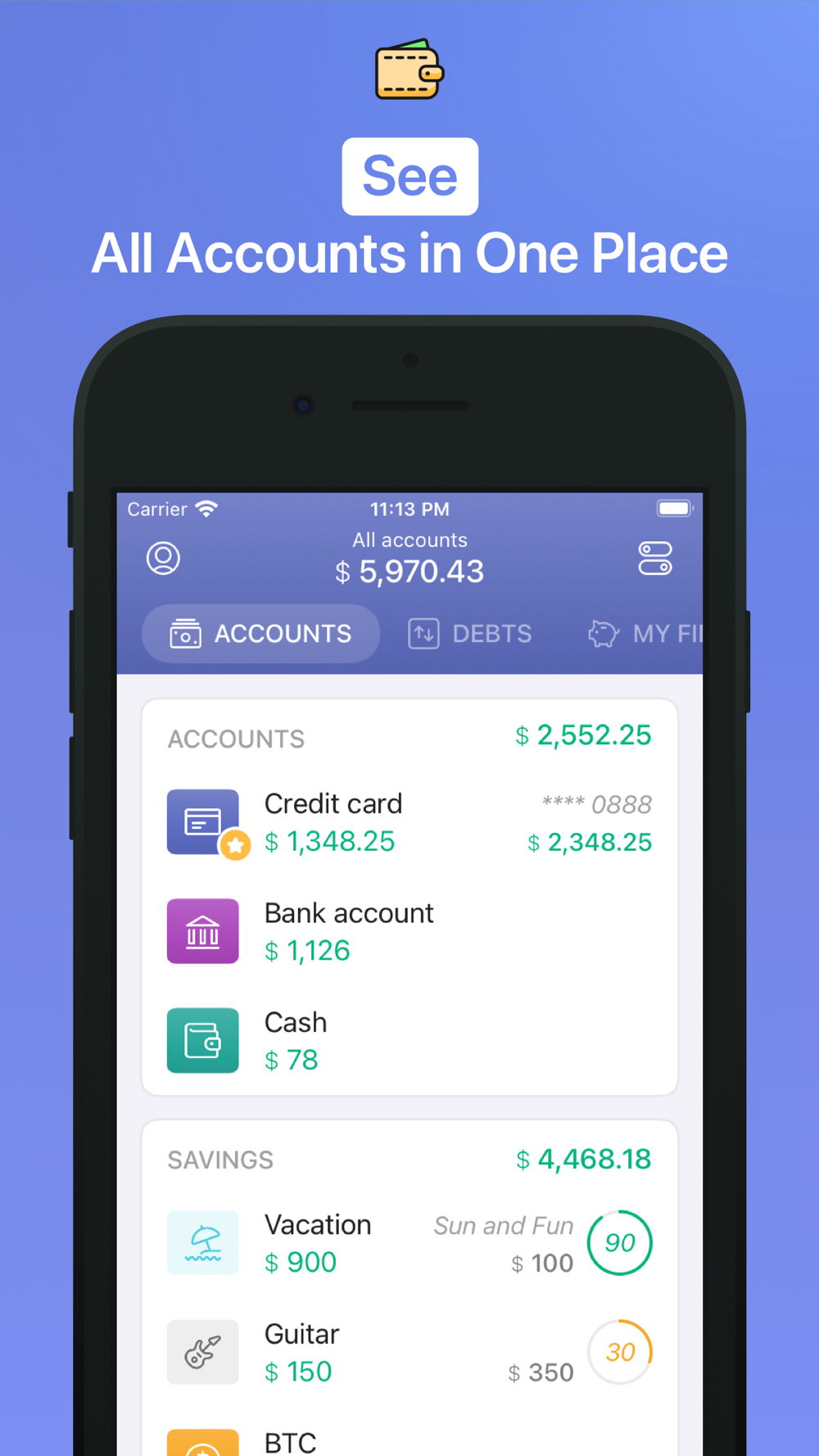 Keep an eye on the balances of all your accounts and reach your financial goals efficiently.