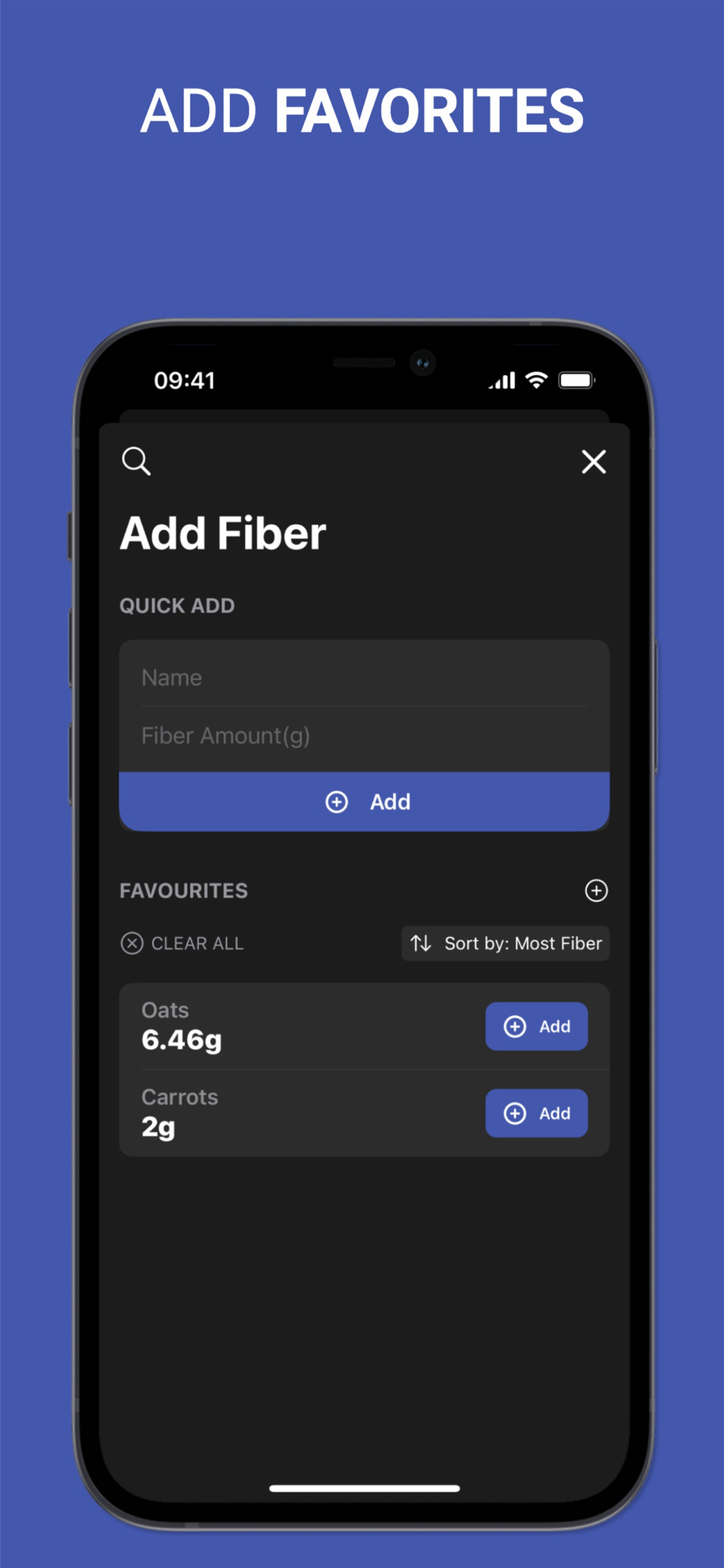 Fiber Tracker & Counter allows you to track your fiber intake throughout the day. You set a default target amount of fiber and then add fiber as you go. You can also set the target for a specific day. You can step back through the history of your fiber intake and encourage healthy habits over time.