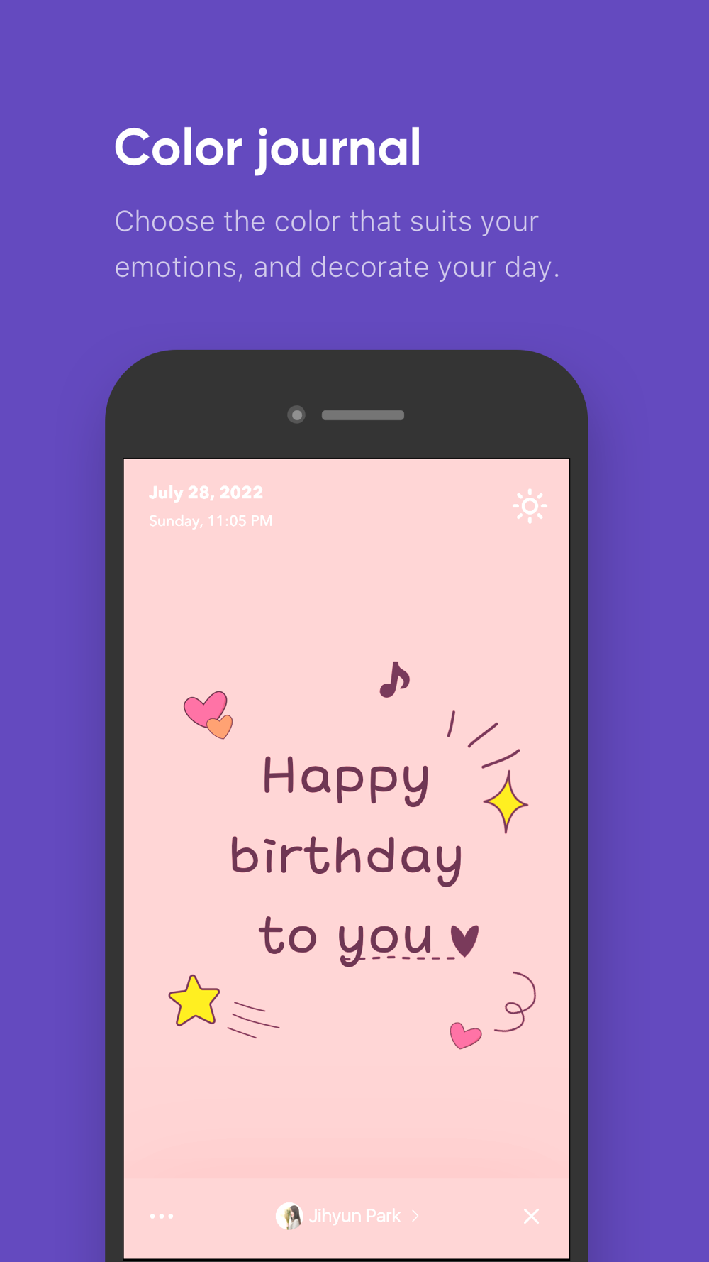 I think color can be interpreted in various ways depending on each person's experience. Imagine and express your own color. We prepared various colors, fonts, and stickers. Designing your day in your own way makes an ordinary day special.