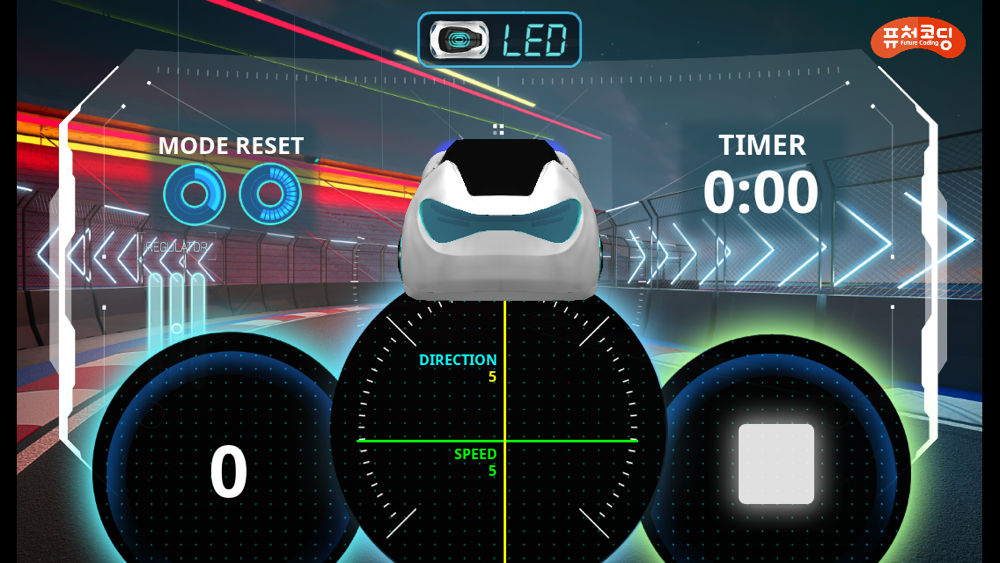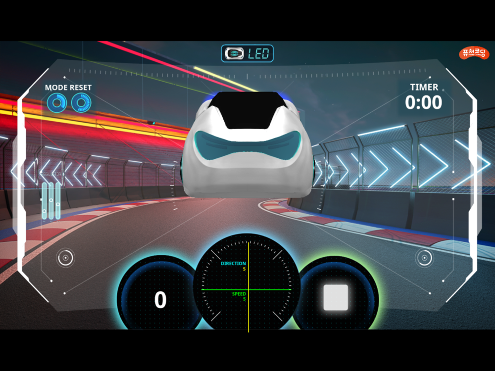 터보 버튼을 누르면 코딩카가 전속력으로 달려가요.