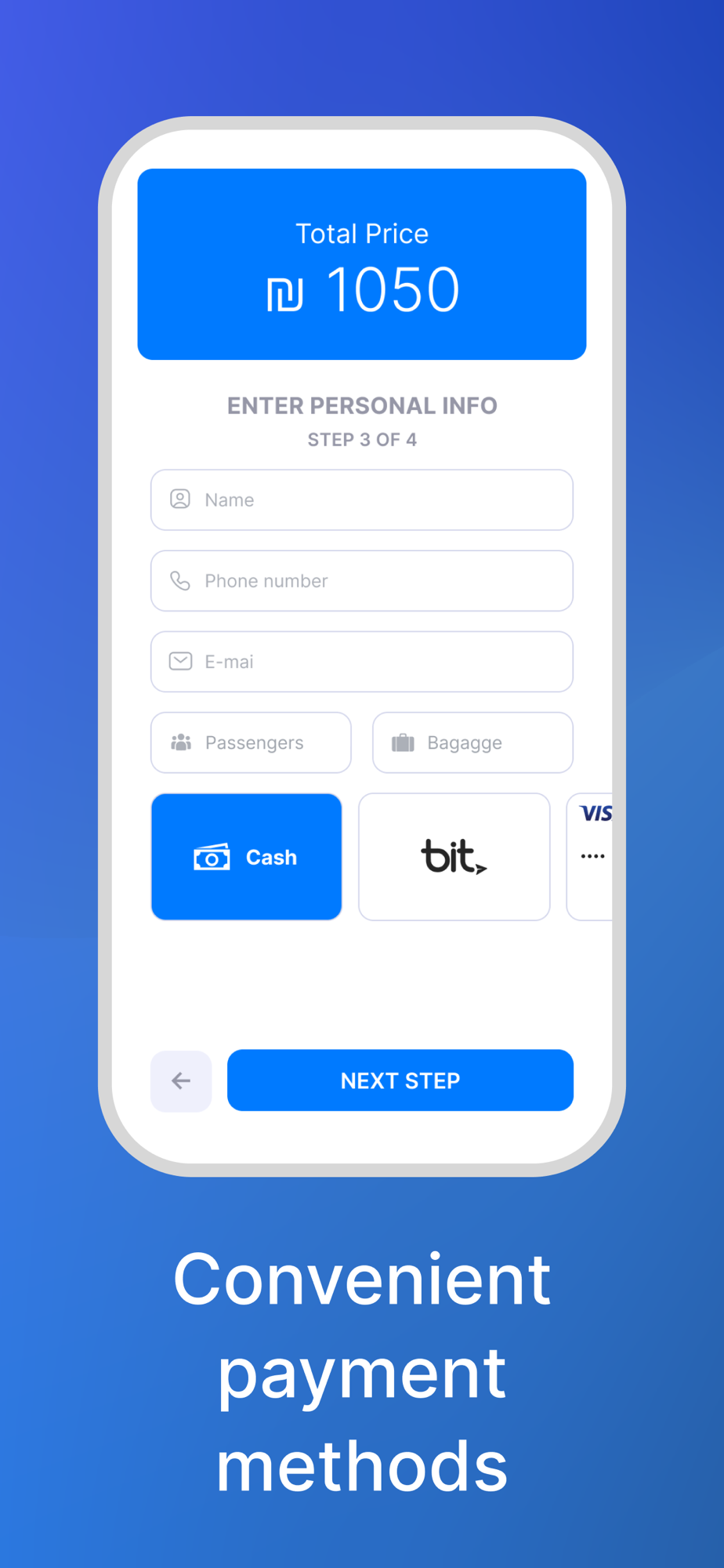 Drivers with strong experience will come for you by car and take you and your luggage to the right terminal at Ben Gurion Airport. Be careful, check-in starts 3 hours before departure, and you need to be at the airport at this time that. Take into account the travel time when filling out the application.