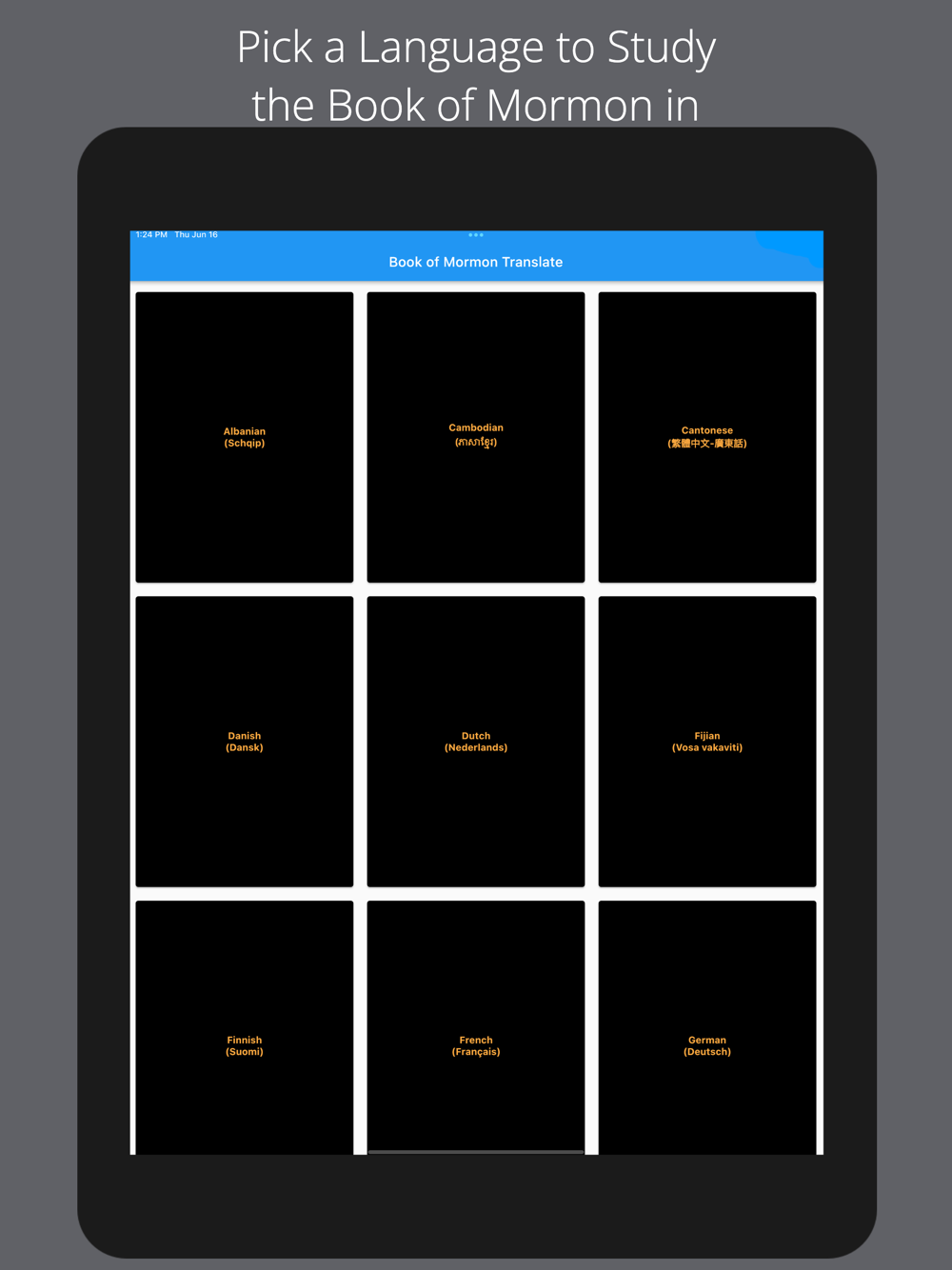 BOOK OF MORMON TRANSLATE is a language study app to help you study the Book of Mormon verses in a different language, side by side with the English verses. The are over 60 languages to study the Book of Mormon in using this great tool. I made this app on my own and it is not associated with The Church of Jesus Christ of Latter-day Saints in any official way.