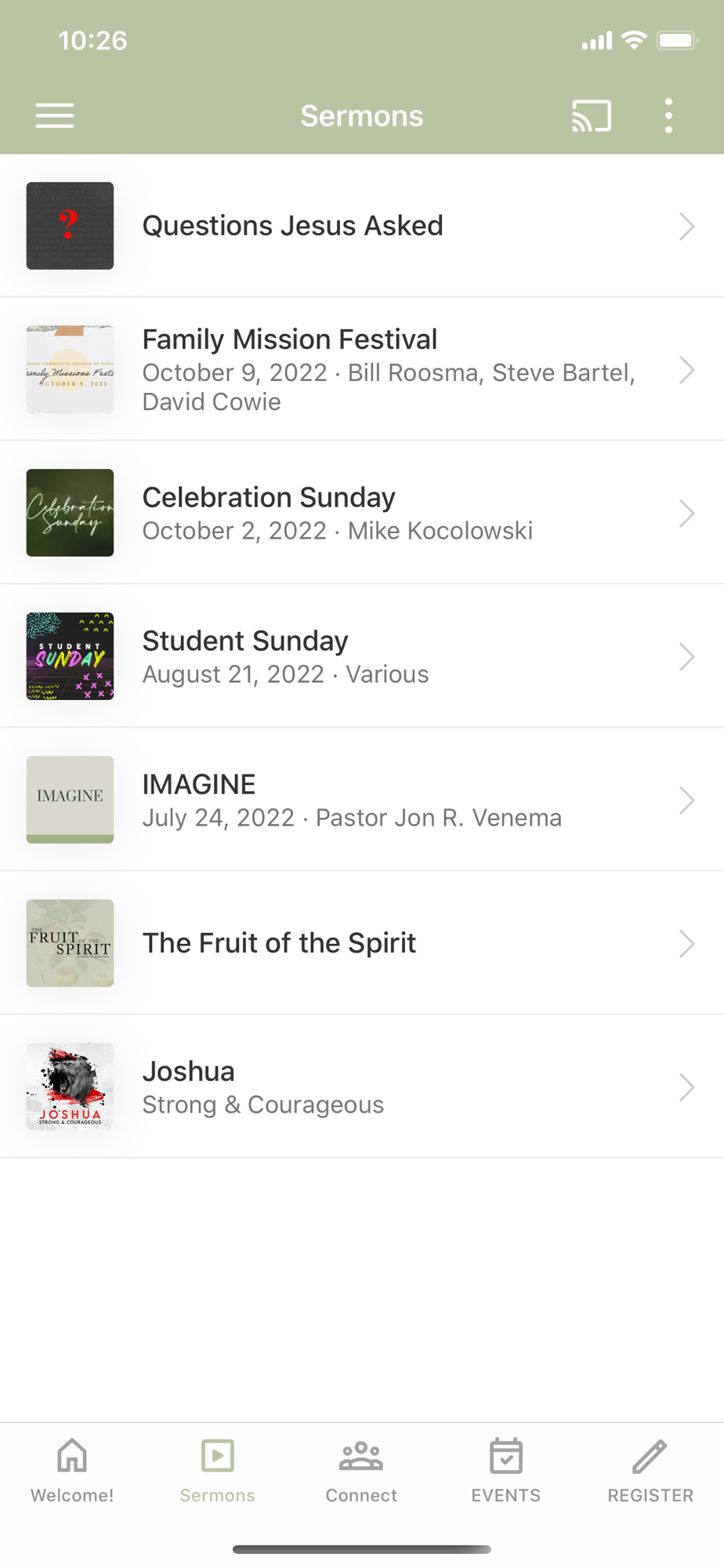 -Watch or listen to past messages
