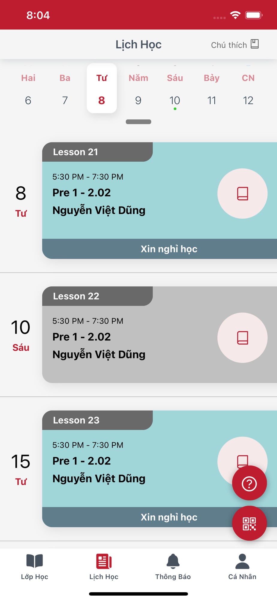 You can check all the information related to your previous and current classes such as tutor profile, Liaison officer, your placement/midterm/final test results, your classmates, and learning calendar with a finger click on your Class. You are also able to find out the start dates of your upcoming courses to arrange your personal calendar with more flexibility.
