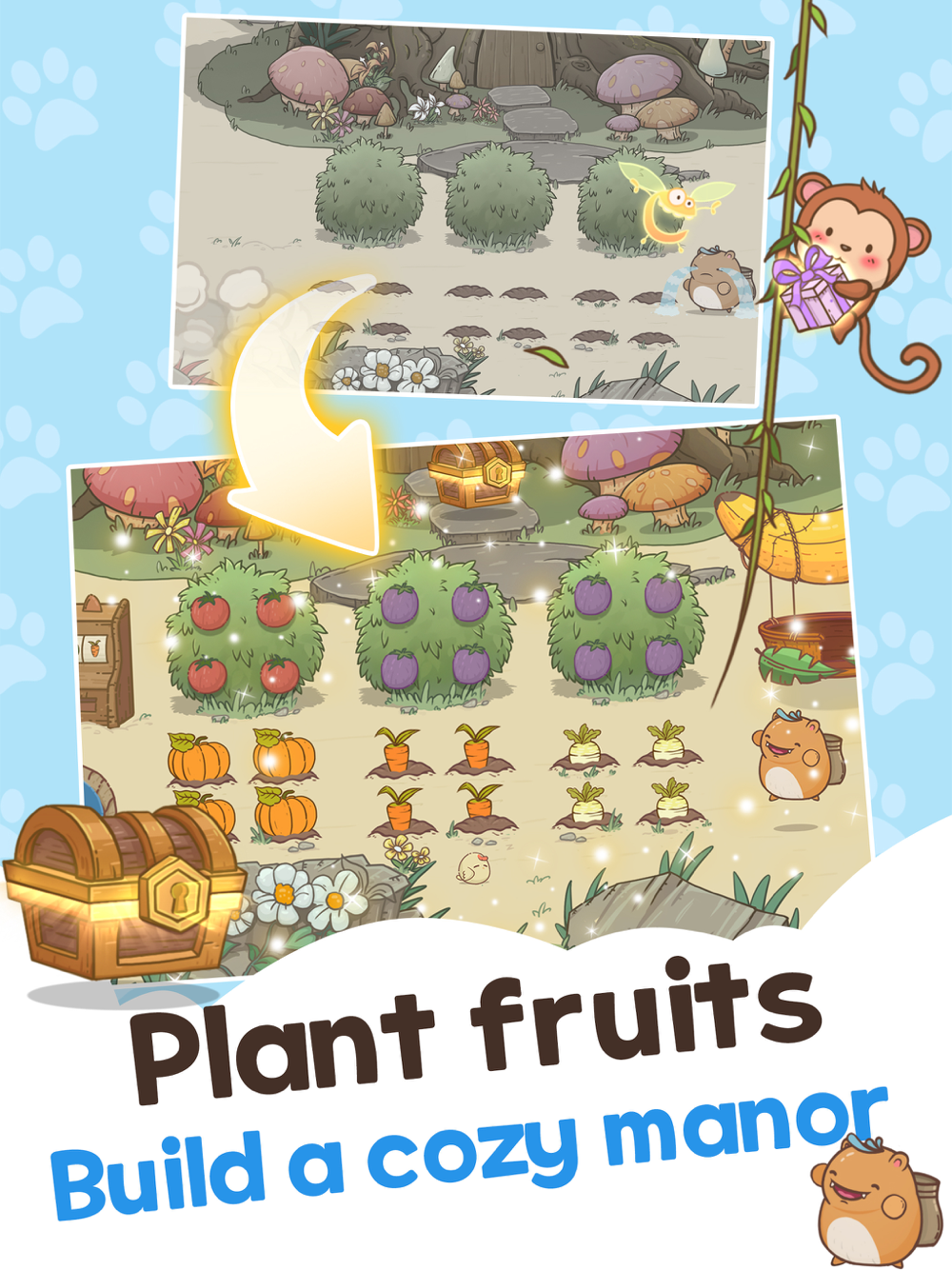 - Manor: run a farm, collect acorns, plant fruits and vegetables;