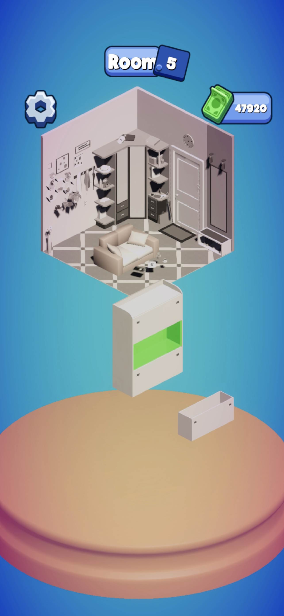 Bring the pieces together, build unique rooms with simple on-trend furnitures. Put it on the floor, mount it on the wall. Think outside the box and create different looks in each room. Complete levels and admire your brand-new furnitures.