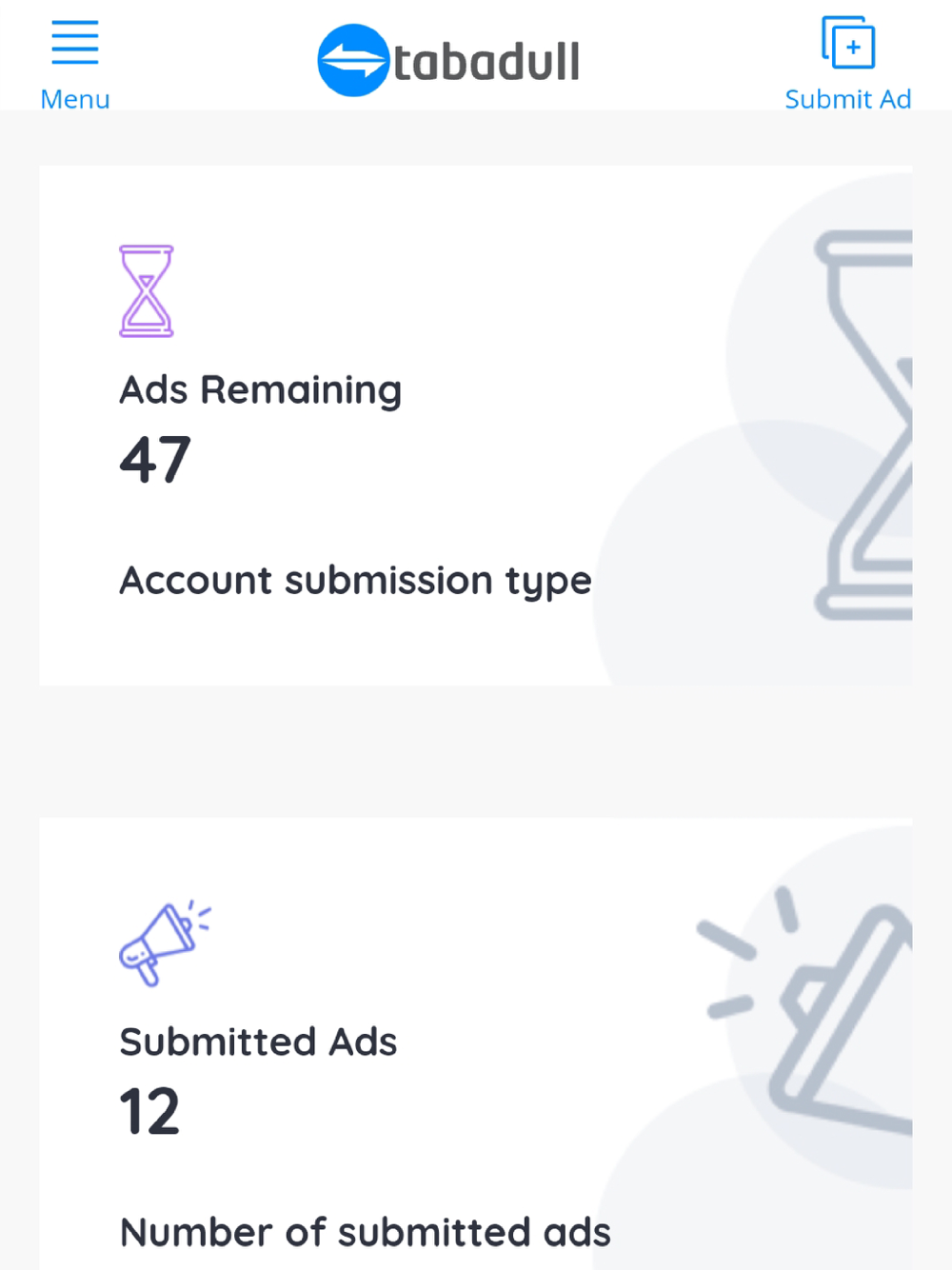 Tabadull offers you 5 different types of ads which you can select during ad posting or reposting. It is not possible to switch between different ad types while it is live. Available types are: