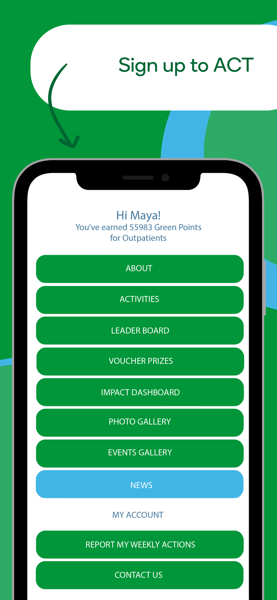 This app is the companion for the ACT programme, designed to reward you for taking positive sustainability actions.