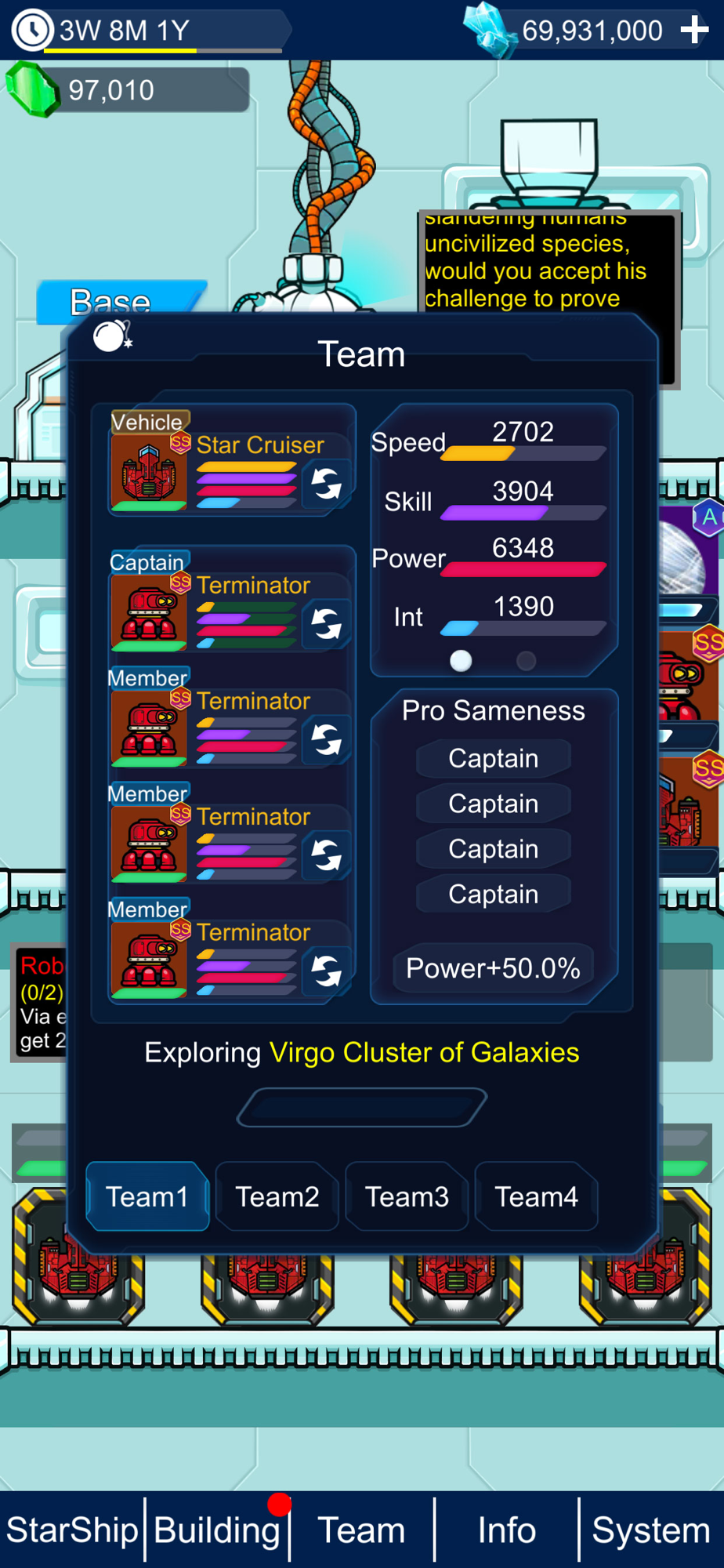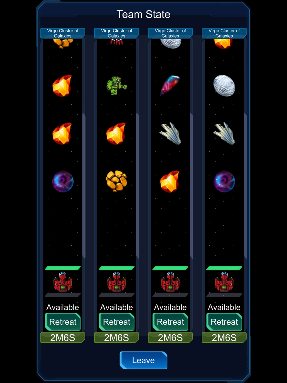 Your team can be arranged to explore space, collect resourses and defeat monsters.