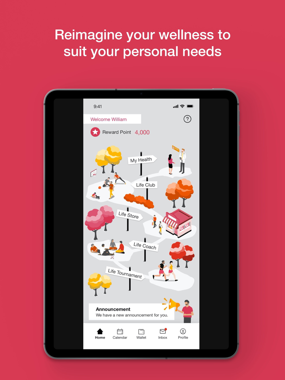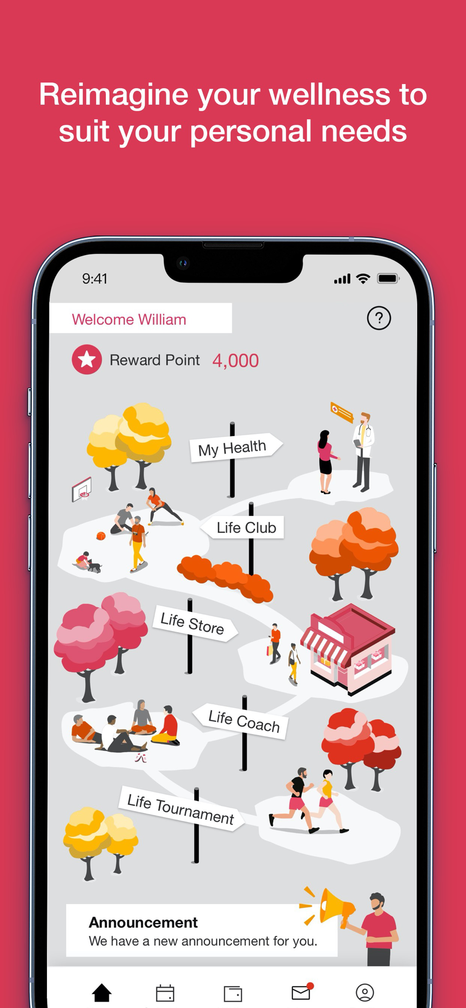 A wellness app that helps you discover new ways to live healthily, work smartly, while staying socially connected and responsible, through diversified benefits, gamified award mechanism, health tracking and interest groups.