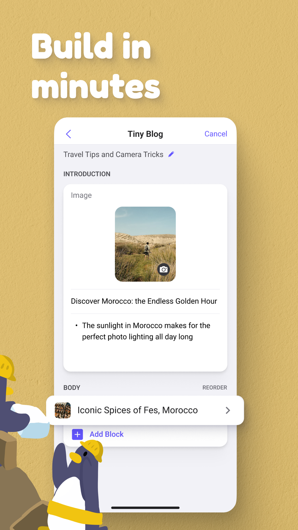 Tiny Blog—tell stories by adding blocks and sharing anywhere