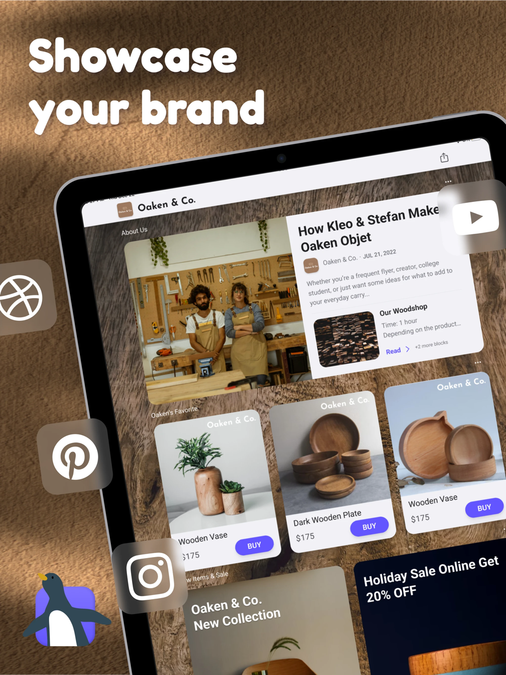 You sell it—curate and sell your products, services, subscriptions, merchandise, courses, menu, workshops, and anything else in your own shop