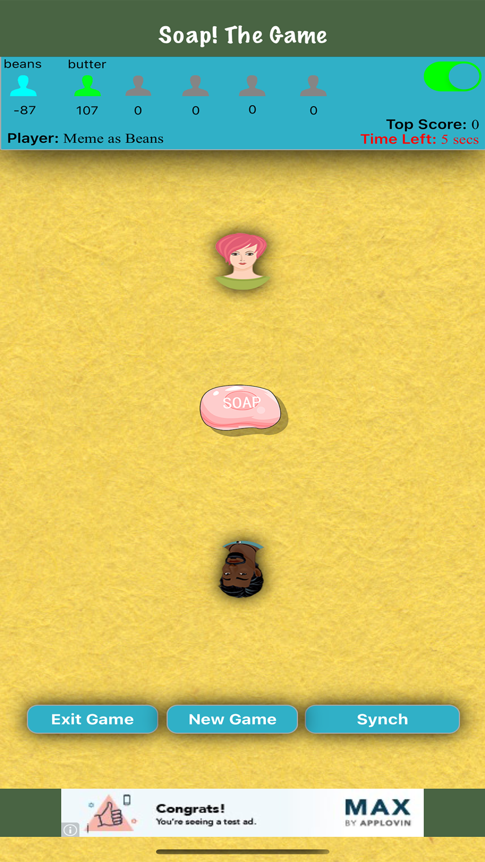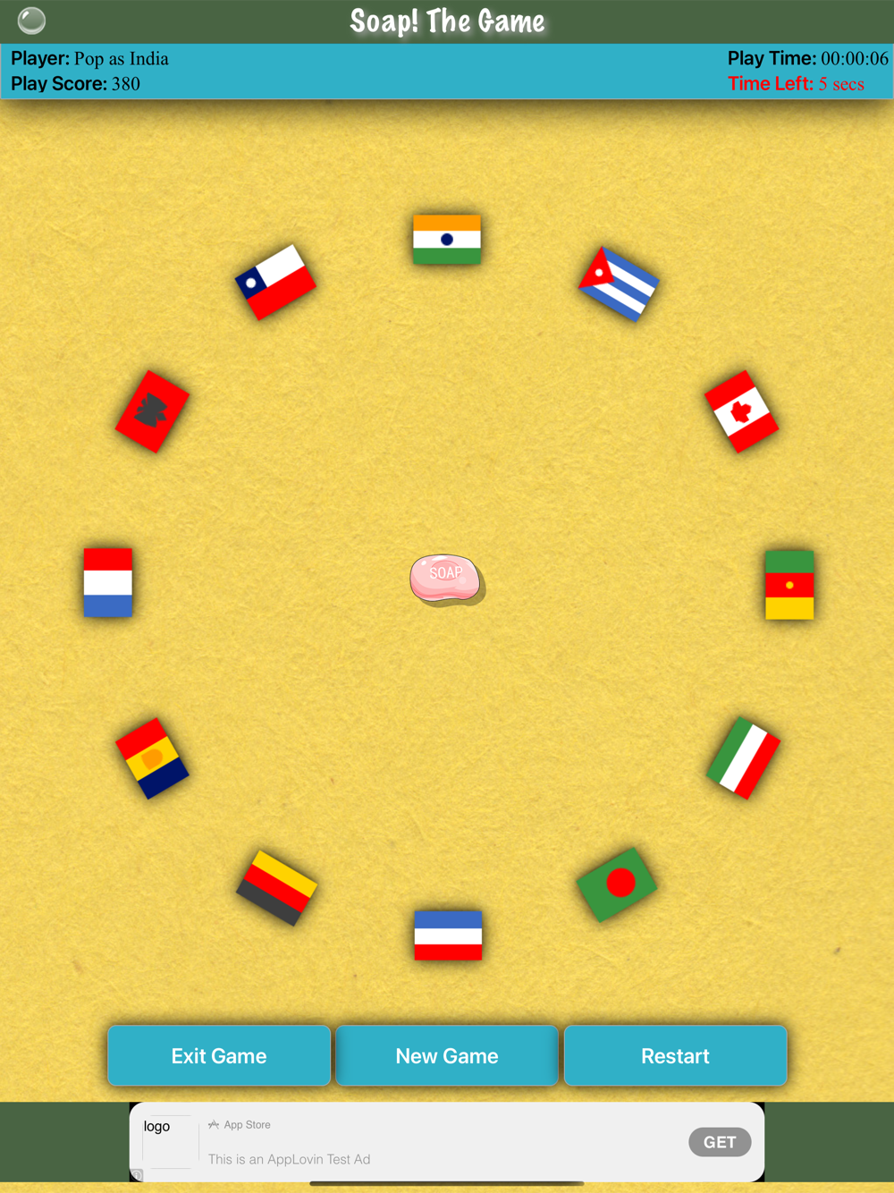 Soap is a fun concentration game like no other! You select to play as a commodity from the supermarket shelf (or in the ring). The goal is to be the last player standing in the ring by correctly identifying a selected player (shop item) before the time expires (10 seconds). There is one catch though, you must tap Soap, the ring master, before identifying the player to find. Listen carefully, as soap might have some tricks up his sleeve to trip you up from time to time. The game comes in both SinglePlayer and MultiPlayer Mode. You can play with up to 6 persons in a multiplayer game via a network connection (WiFi or Bluetooth).
