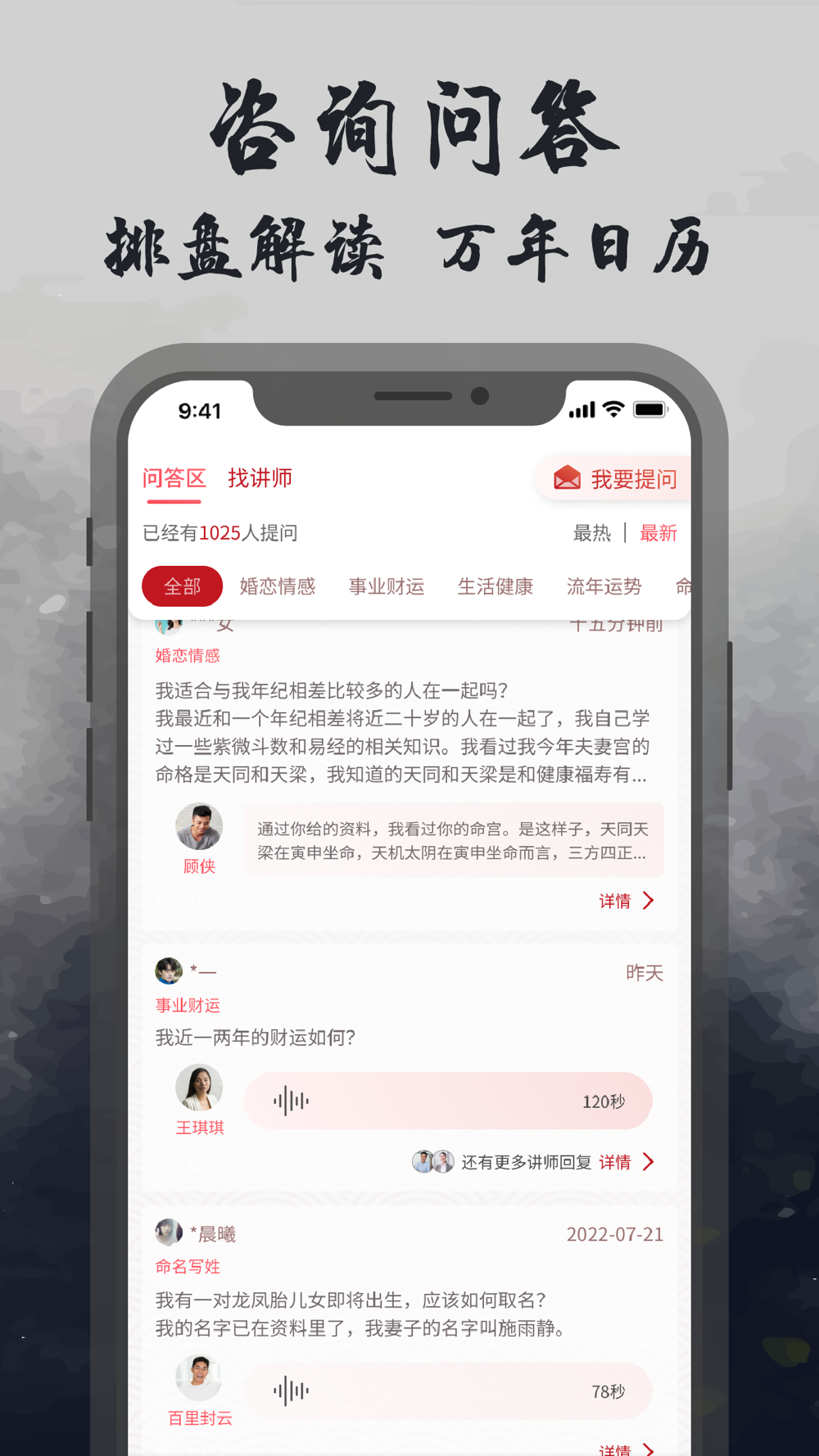 3、多名资深、知名的讲师入驻和直播,不管您有感情、事业、财运上的问题,都能为您答疑解惑。