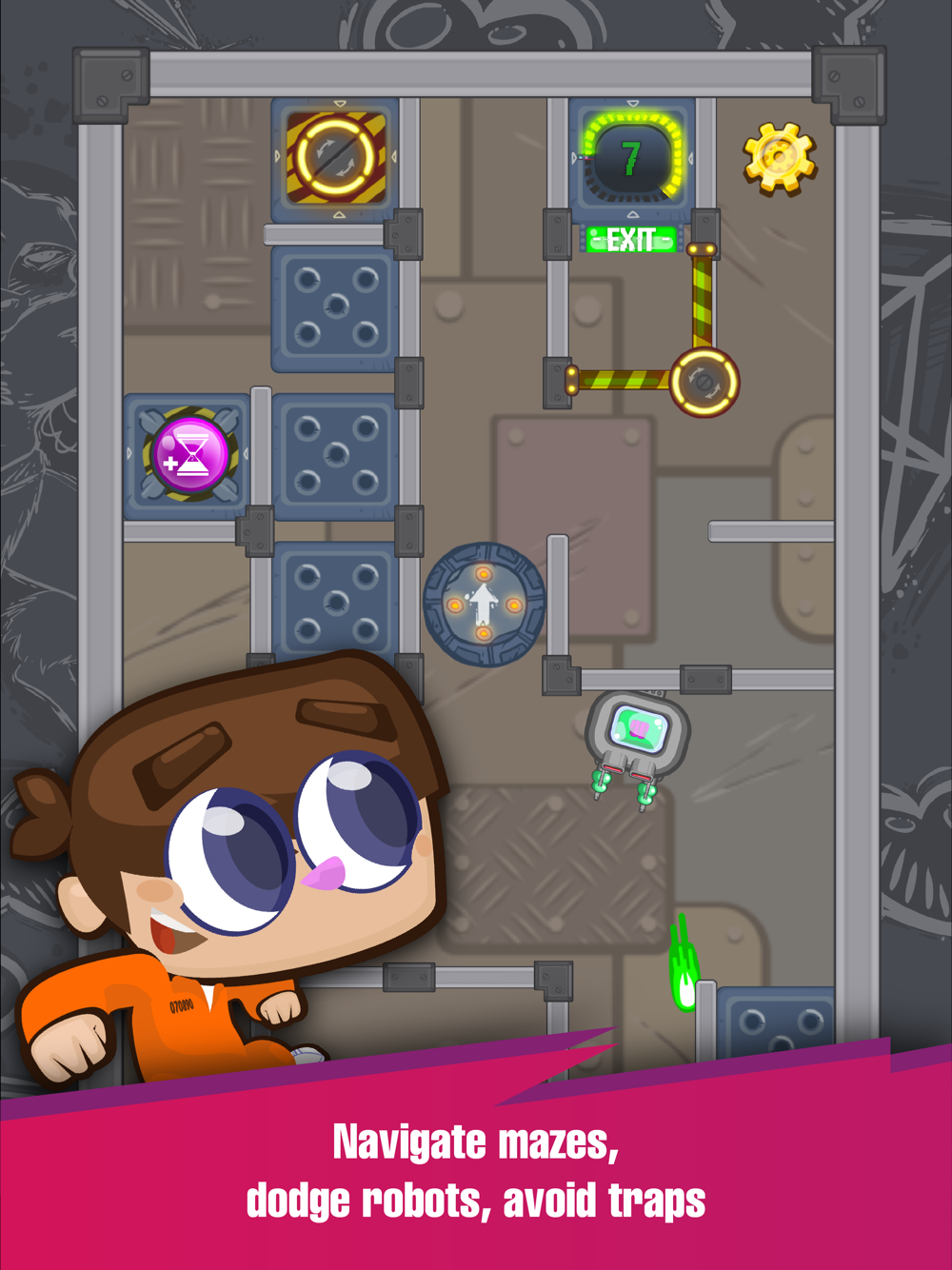 Labyrinth Escape promises quick, engaging gameplay with over 100 levels, making it a perfect fit for your daily routine. Navigate intricate mazes, dodge menacing robots, and outsmart tricky traps as you reach for the exit. Use your finger to guide your character through the labyrinth, collecting valuable coins along the way to boost your score and equip yourself for the ultimate challenge. Success in this adventure hinges on quick reflexes and strategic thinking. Play anytime, anywhere, whether you have a spare minute or an extended gaming session. With levels lasting between 20 seconds and 1 minute, Labyrinth Escape ensures entertainment at your fingertips. Enjoy the satisfaction of conquering bite-sized challenges that strike the perfect balance between difficulty and excitement. Coins are not just a symbol of achievement; they unlock a world of customization and progression. Use your collected coins to access various character skins, showcasing your unique style. Want an edge in your escape endeavors? Strategically invest coins in boosts to amplify your abilities. Labyrinth Escape isn't just a game; it's an immersive adventure that tests your mind and reflexes. Immerse yourself in a world of quick-paced puzzles, personalize your character, and conquer mazes like a true pro. Download now and embark on your maze journey to become a master of the labyrinth!