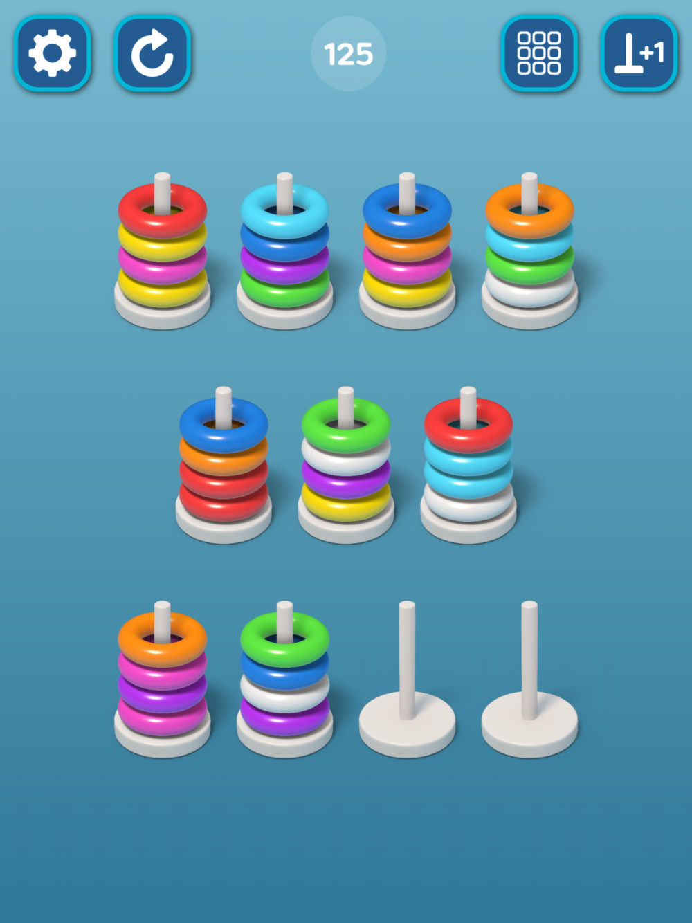 Combine and separate color hoops. Arrange in places all 3d circles and win the game.