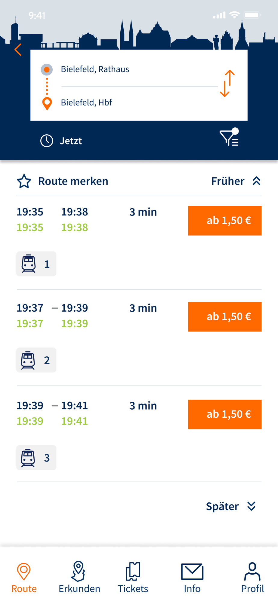 Timetable information: Find the current departures and your connection by bus, train or regional train at any time. Save your favourite destinations and get connection information with just a few clicks. To use all functions, please activate the location function.