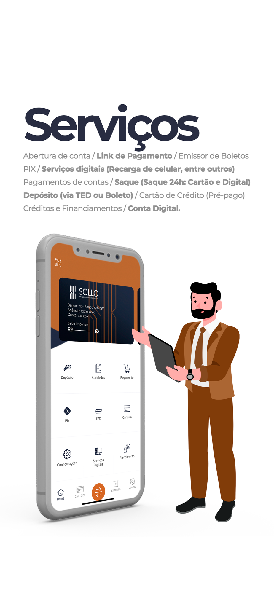 "Abra sua conta digital no Sollo Bnk. Evoluímos cada vez mais para que você tenha a melhor experiência, O Sollo Bnk oferece uma conta corrente completa e totalmente gratuita!