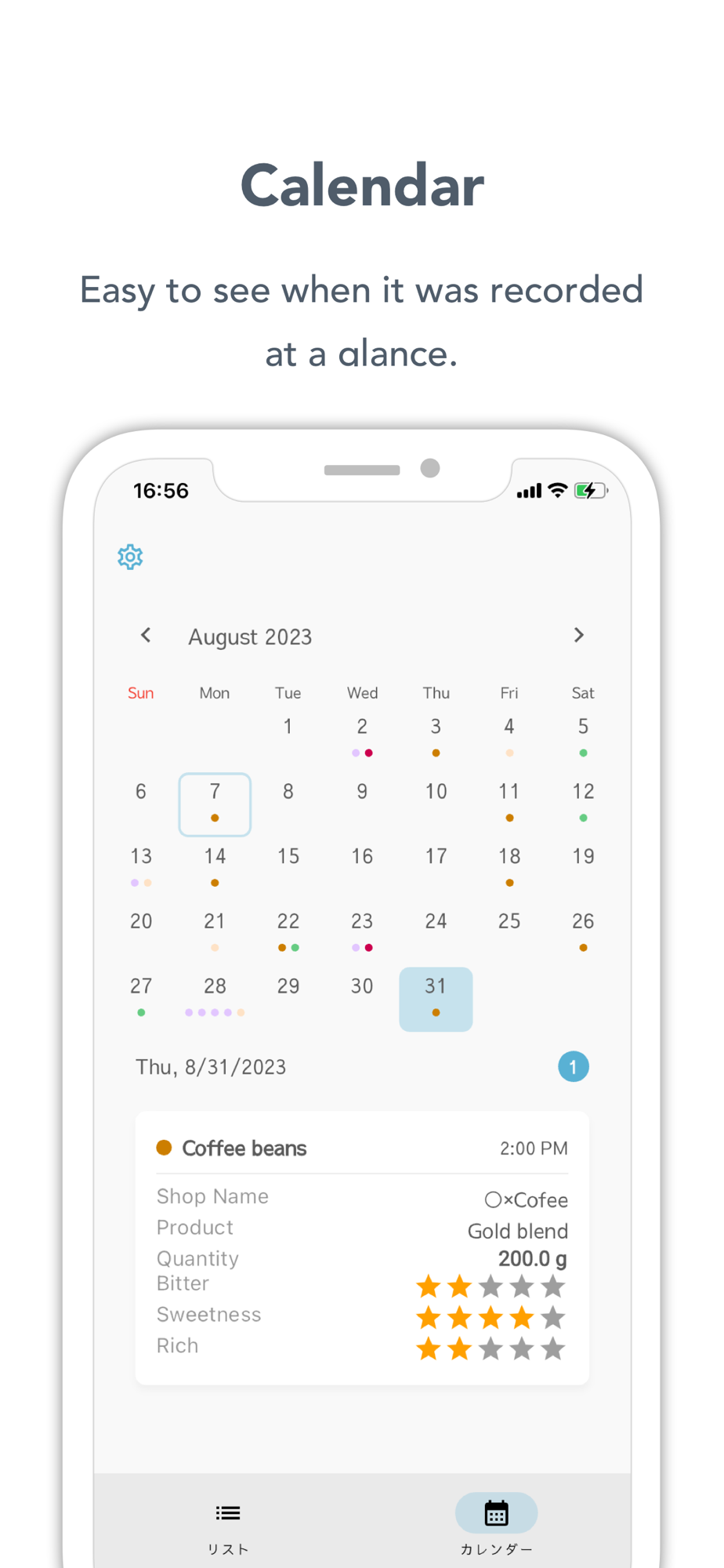 You can check your records through lists and charts. You can also perform searches and sorting.