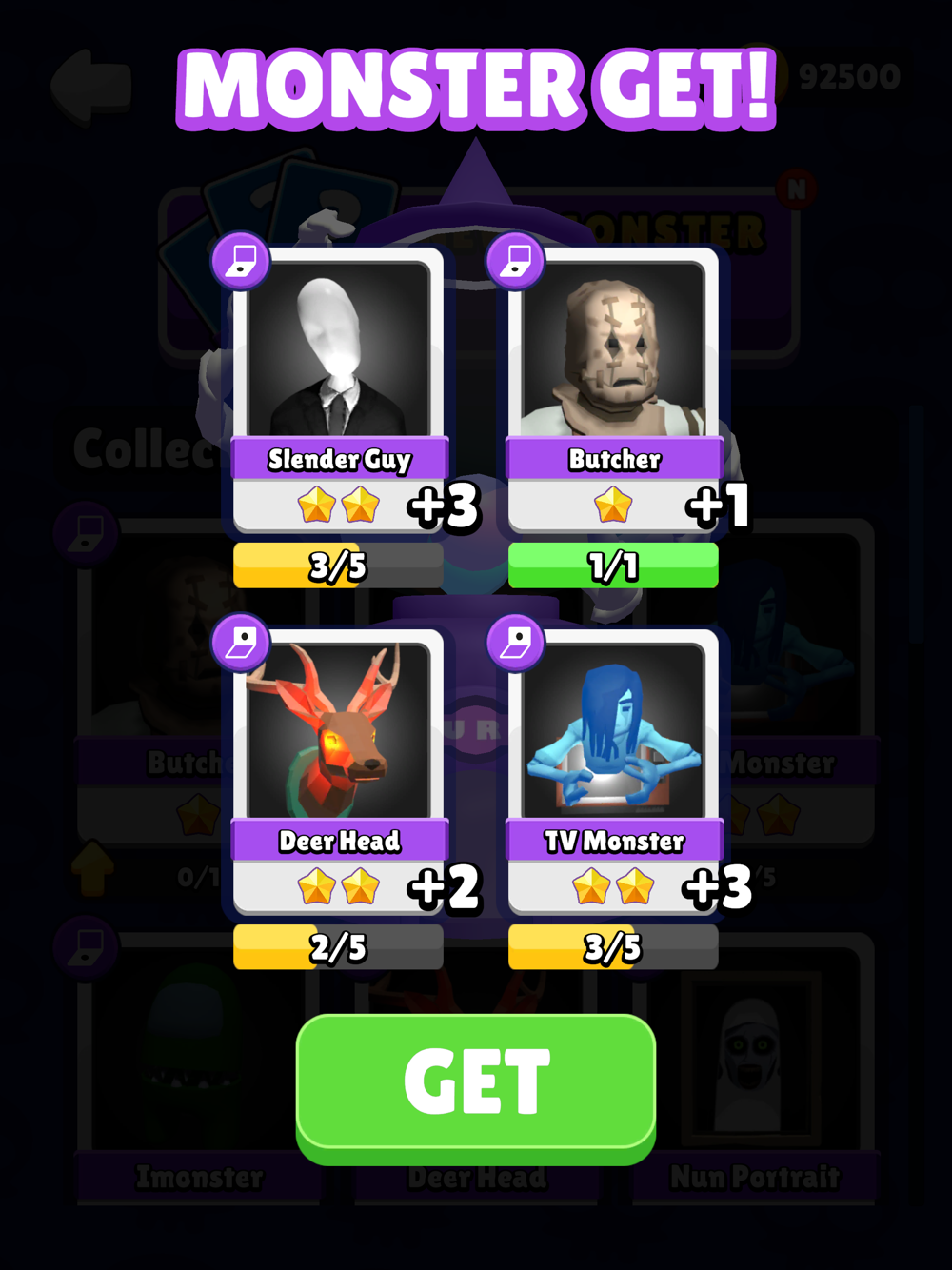 Clear the map to acquire monster cards and draw monster cards from the collection to achieve a new monster.