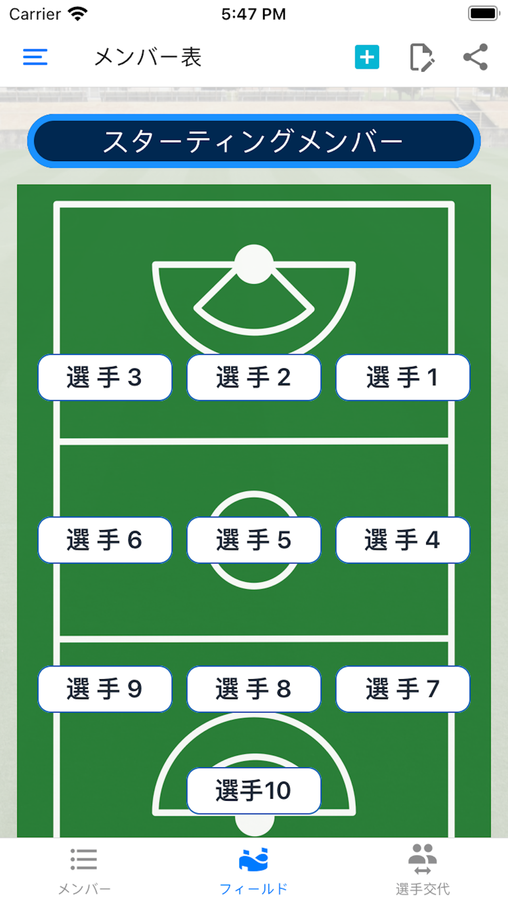 ・スターティングメンバー、ベンチ、選手交代をメール、LINEなどで共有できます。