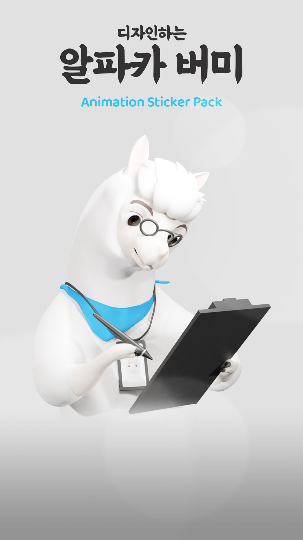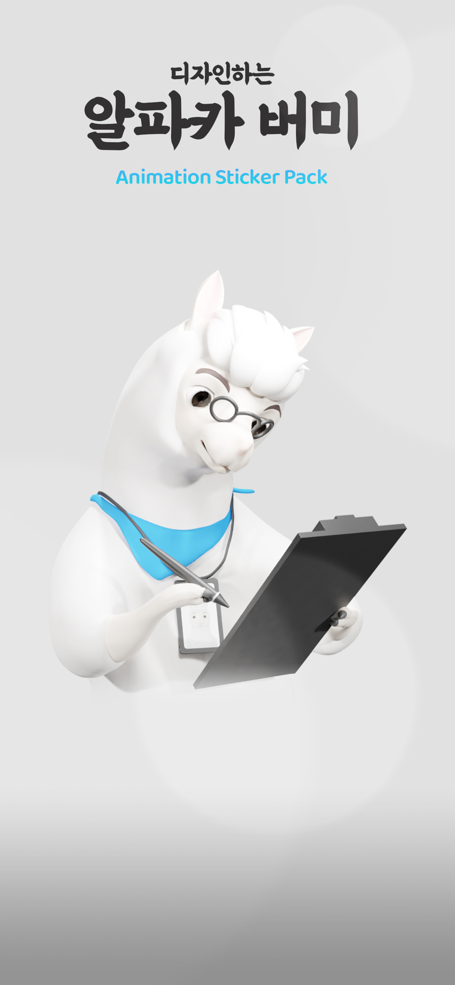 "디자인하는 알파카 버미”는 디자인 업종에 근무하는 알파카 캐릭터 컨셉을 가진 이모티콘 입니다.