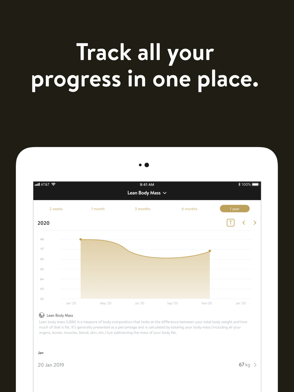 The app connects to wearable devices like Apple Watch (synced to Health app), Fitbit and/or Withings to sync body stats instantly. It also integrates into existing apps such as MINDBODY, InBody or MyFitnessPal.