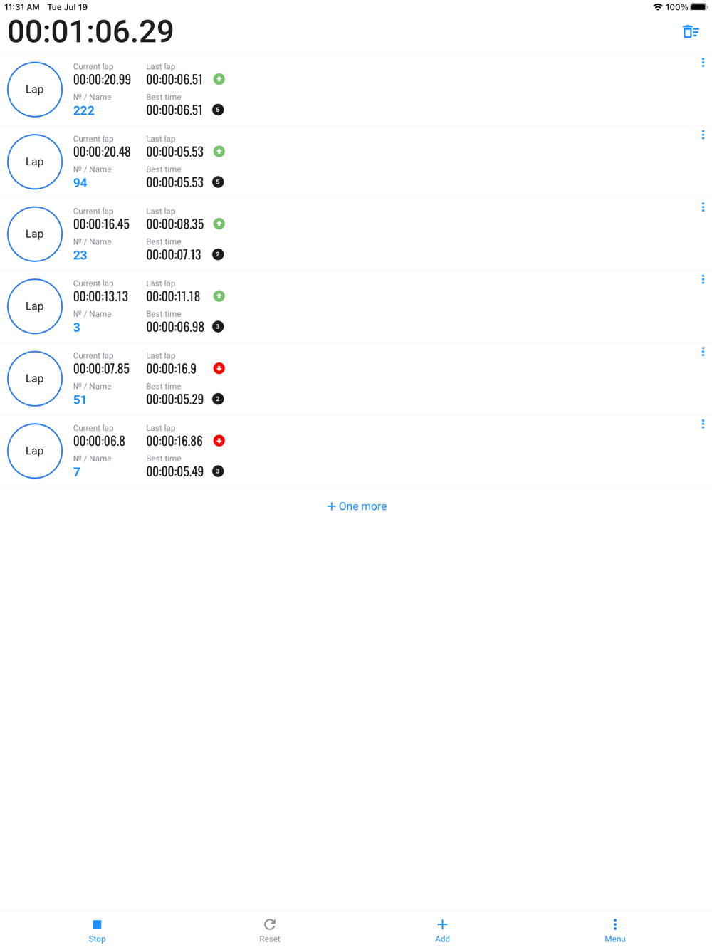 - Allows you to view the results of all laps and compare the achievements of several participants