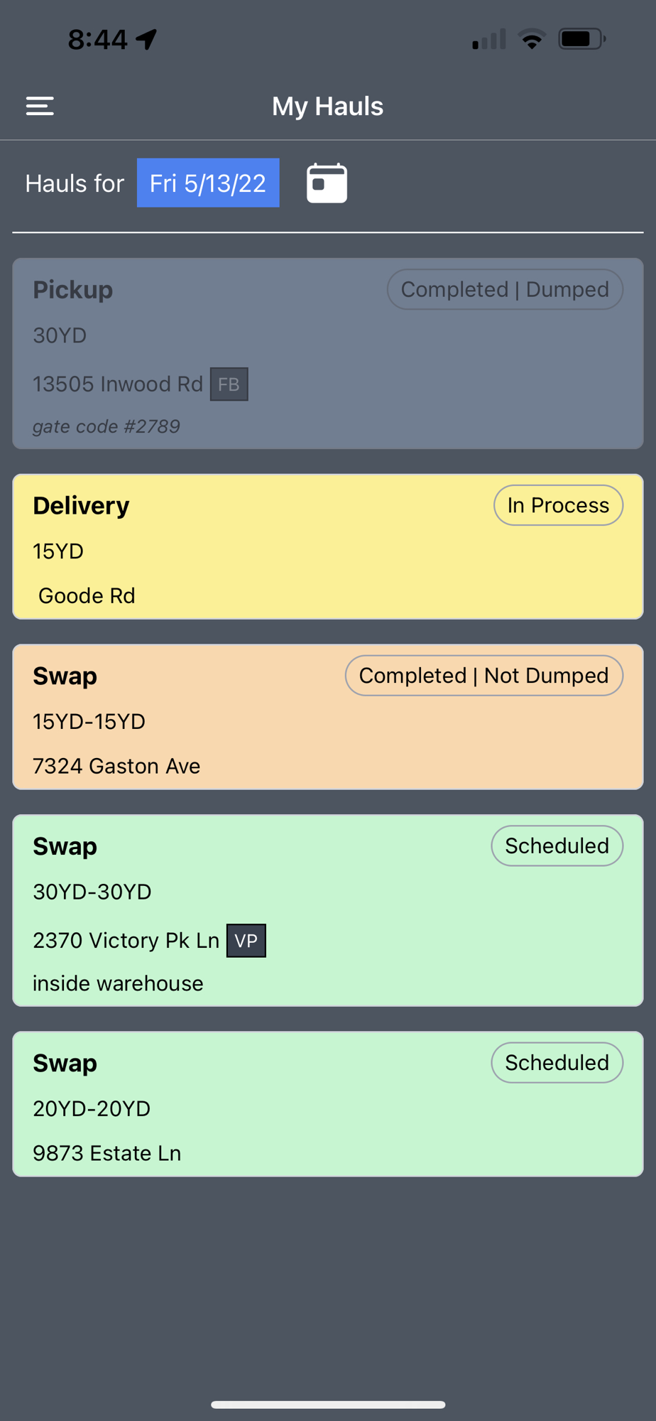 For users of Hauler roll off dumpster management SaaS, drivers can log in to this app and view their scheduled hauls for a specific date, track their activities related to the haul, and add notes and photos for their hauls. Using this app, drivers can also manage yard inventory for dumpsters.