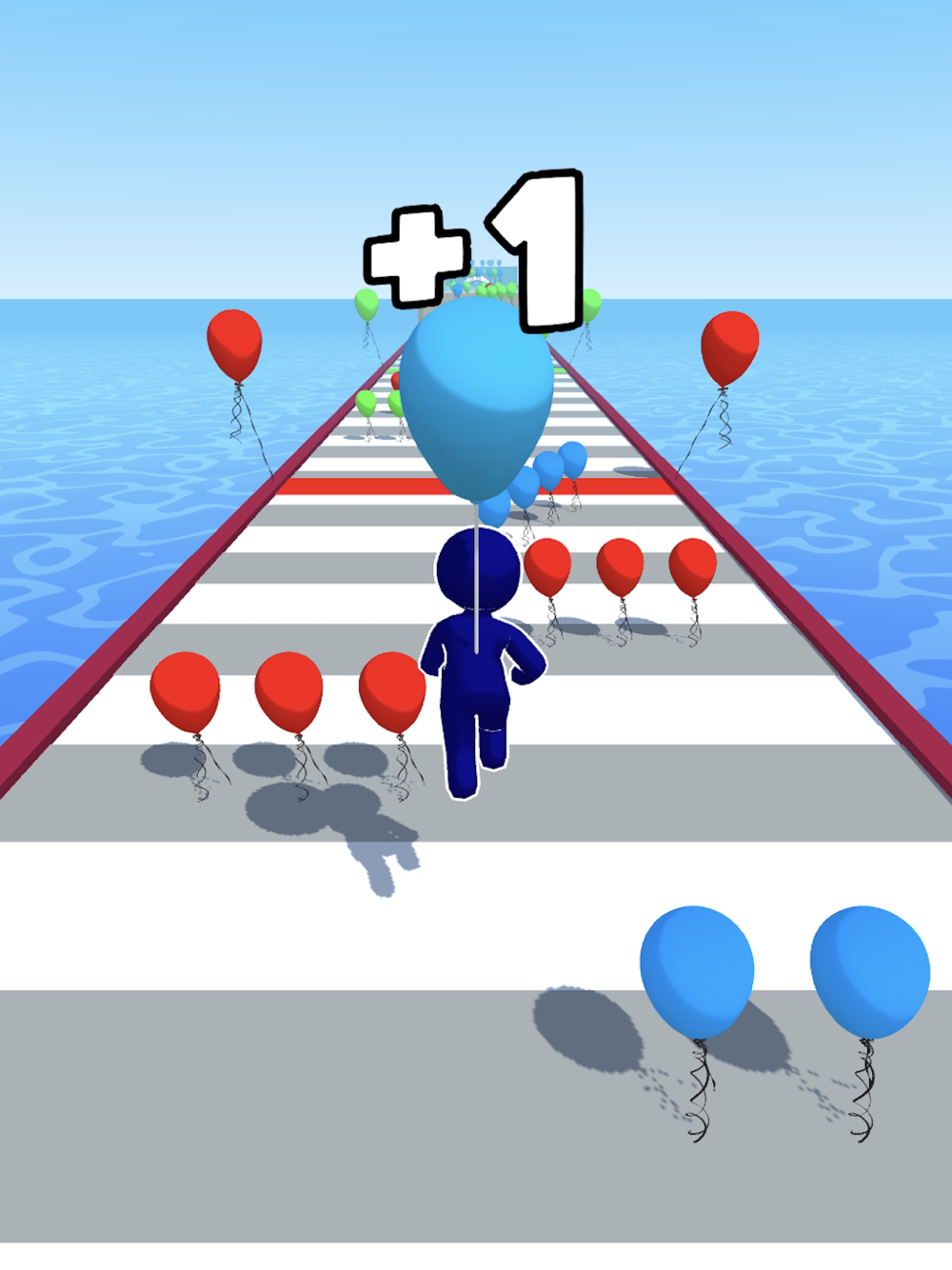 In this hyper-casual game, you will need good timing and reflexes to succeed. There are many obstacles in your way, so be careful! You can use the balloons to your advantage, but be careful not to pop them. If you fall off the edge or hit an obstacle, the game is over, so be careful! Collect the blue, yellow or red balloons to get a power-up. The game gets more difficult as you progress, so see how far you can get!